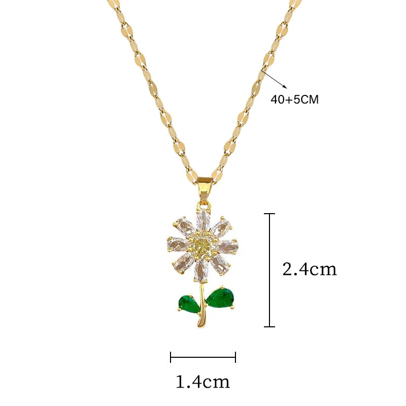 Women's Fashion Jewelry Gold Cubic Zircon Sunflower Earrings Necklace Set 572