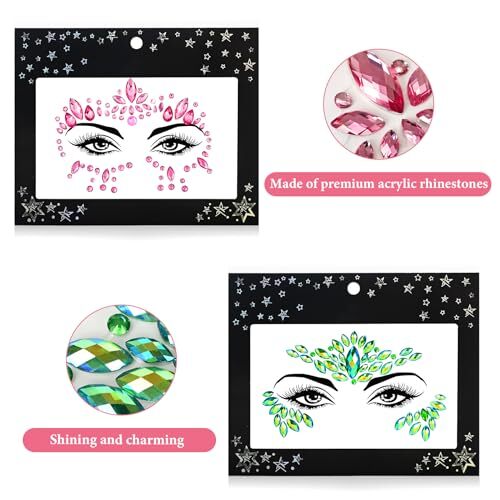 12 Sets Face Jewels Mermaid Rhinestones Stick on Temporary Tattoos Body Vivid