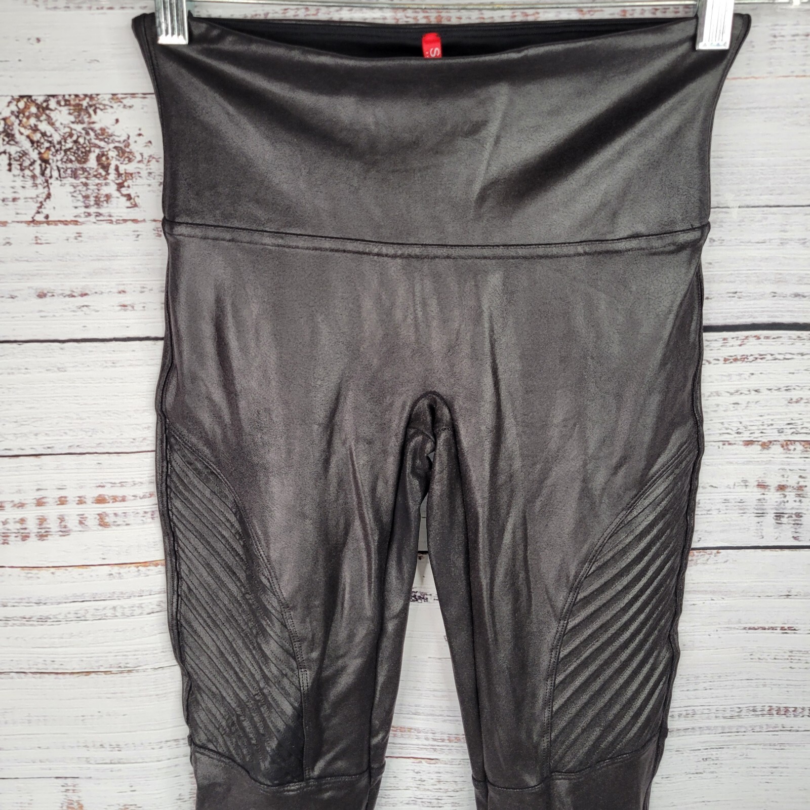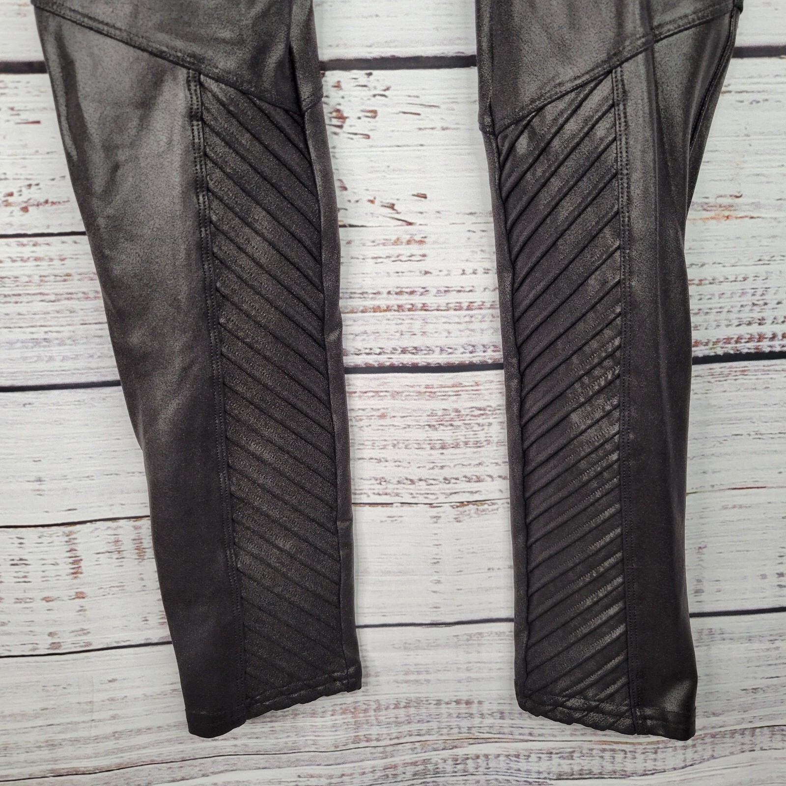 Spanx Women's Leggings Medium Moto Black Nylon Blend Ribbed Faux Leather
