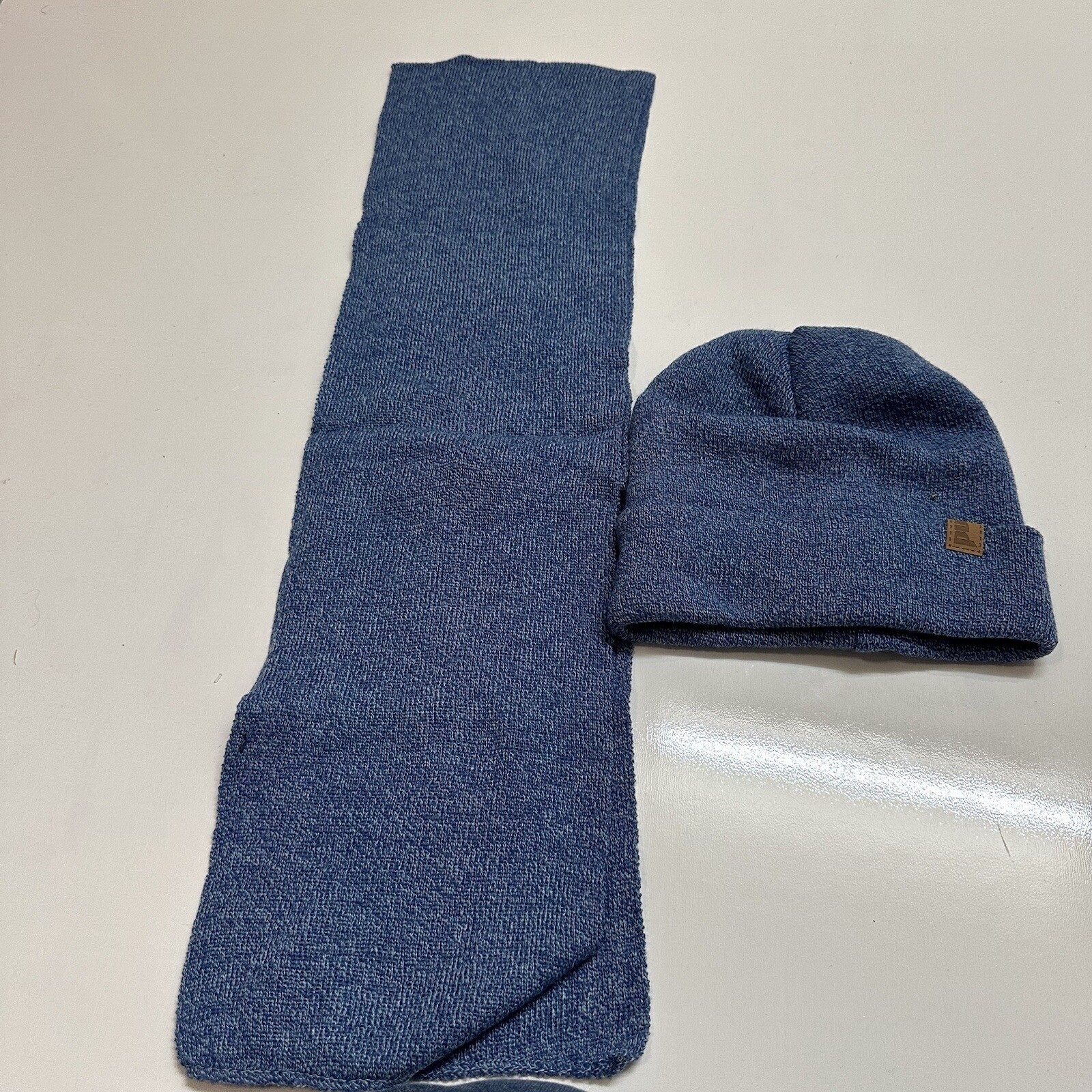 как выглядит Pugs Knit Beanie Scarf Set Cuffed Beanie Logo One Size Scar Blue фото