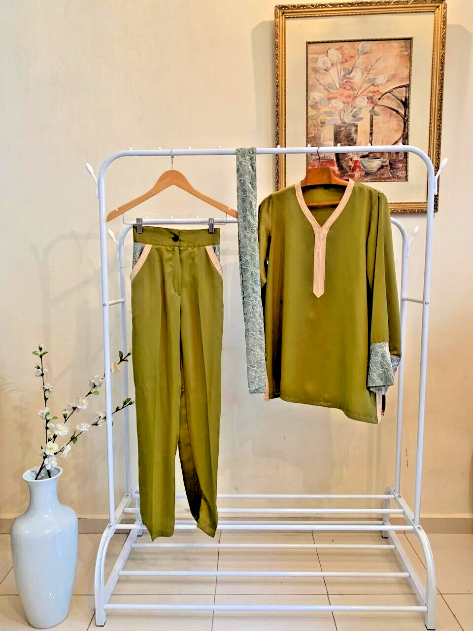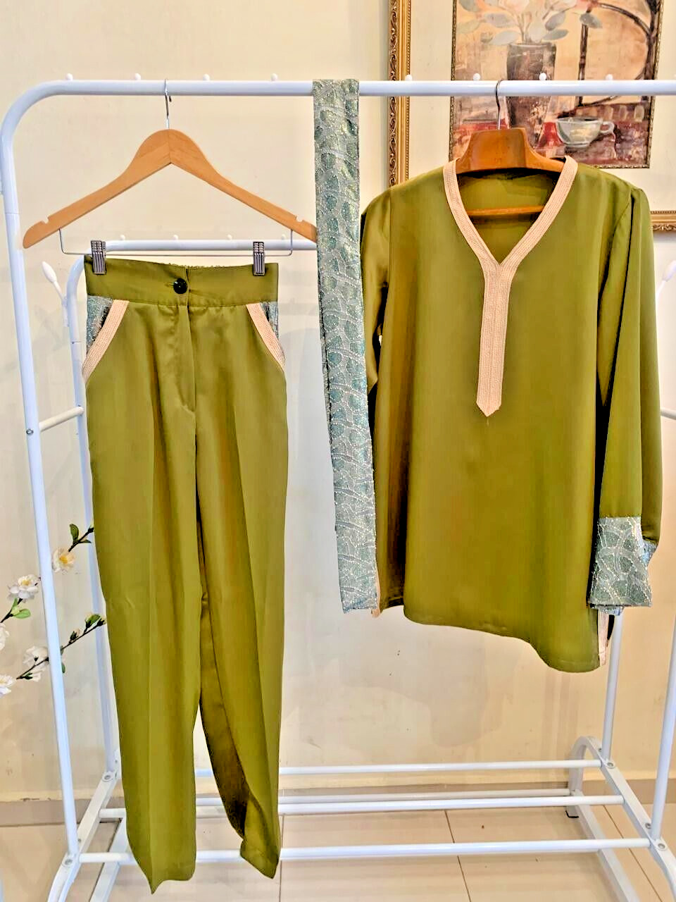 Set Traditional Elegant dress kaftan handmade shirt pants Morocco fes women