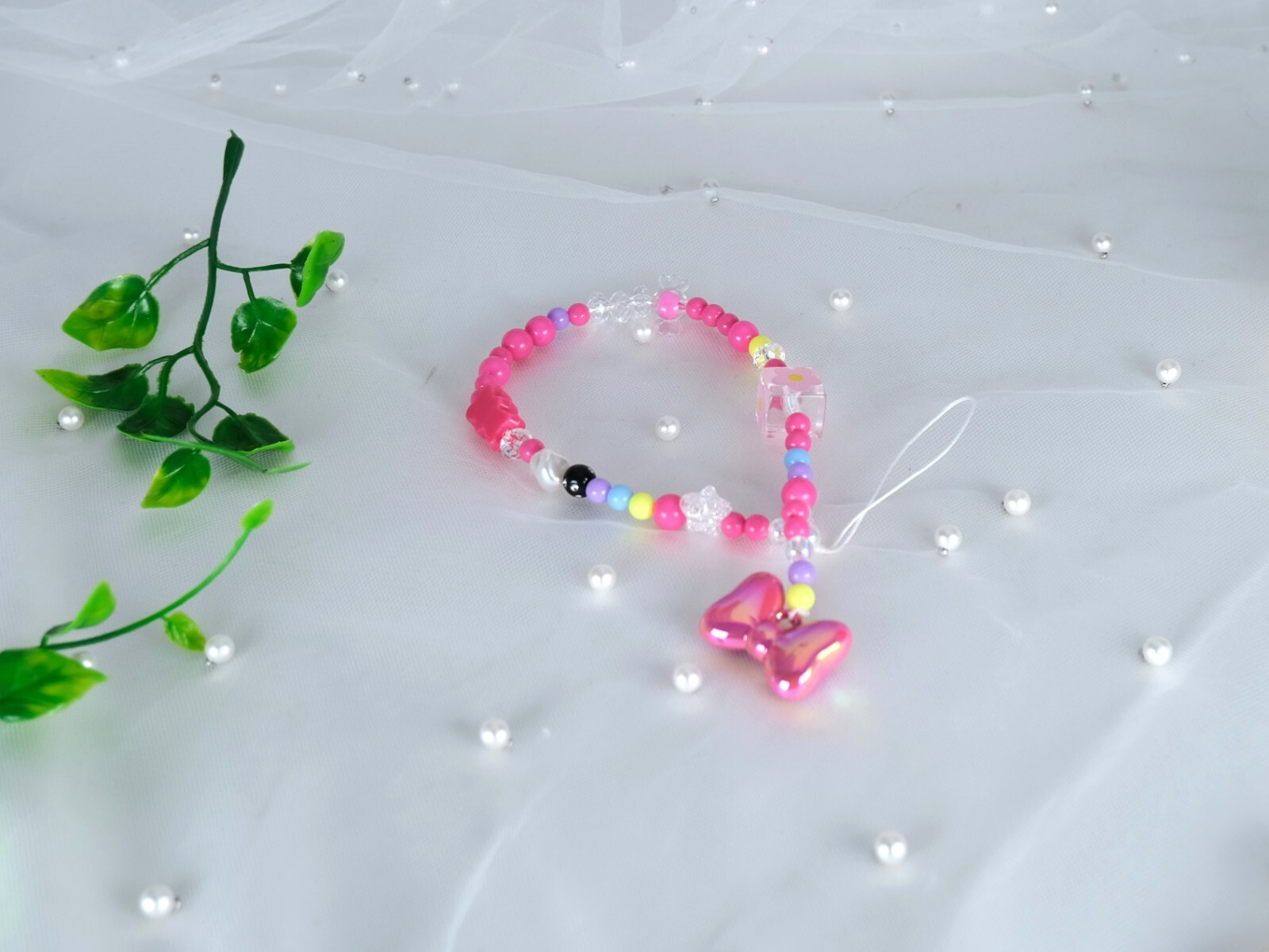 Handmade Pink Cute Phone Strap Healing Crystal Beads Phone Charm Phone Strap