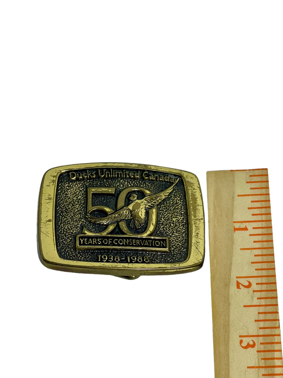 Vtg 1988 Ducks Unlimited Canada 50 Years Of Conservation Brass Belt Buckle