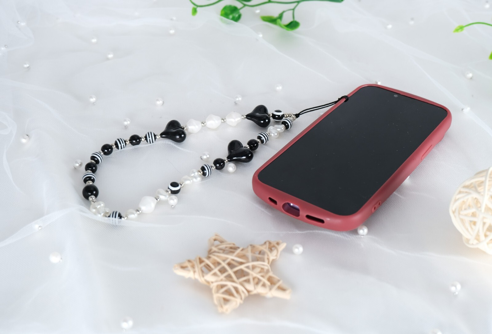 Kawaii Black Beads Phone Charm Strap Phone Lanyard Phone Accessory Phone Strap