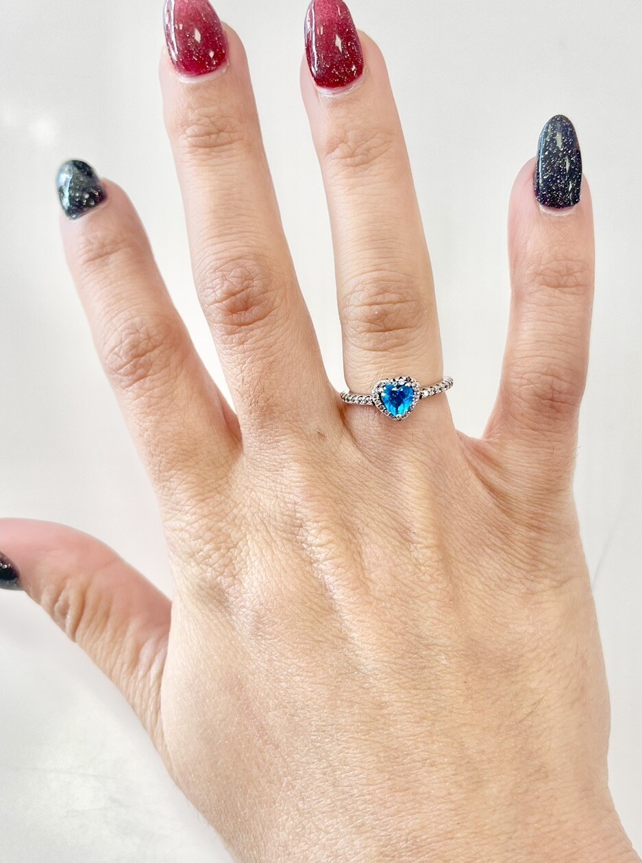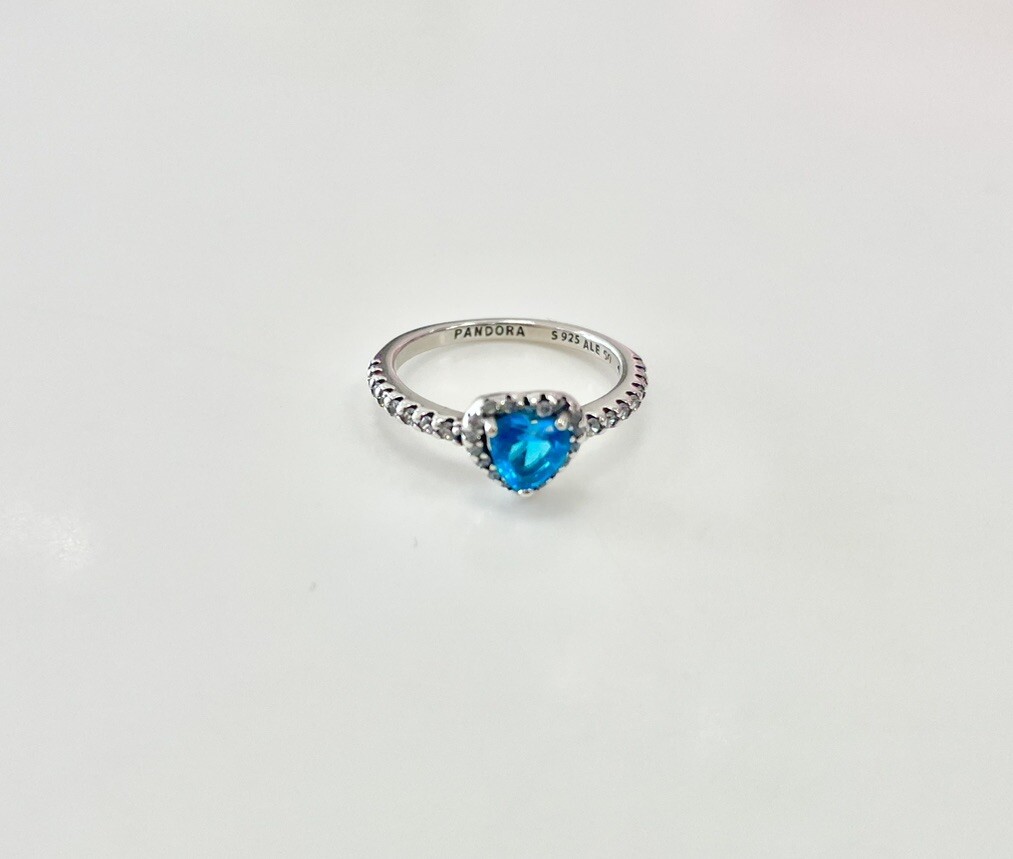 Silver 925 Elevated Light Blue Heart Ring Size 7.5 - 56