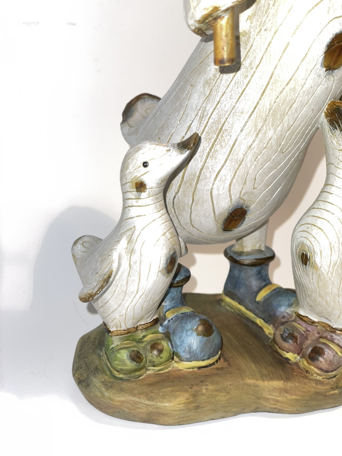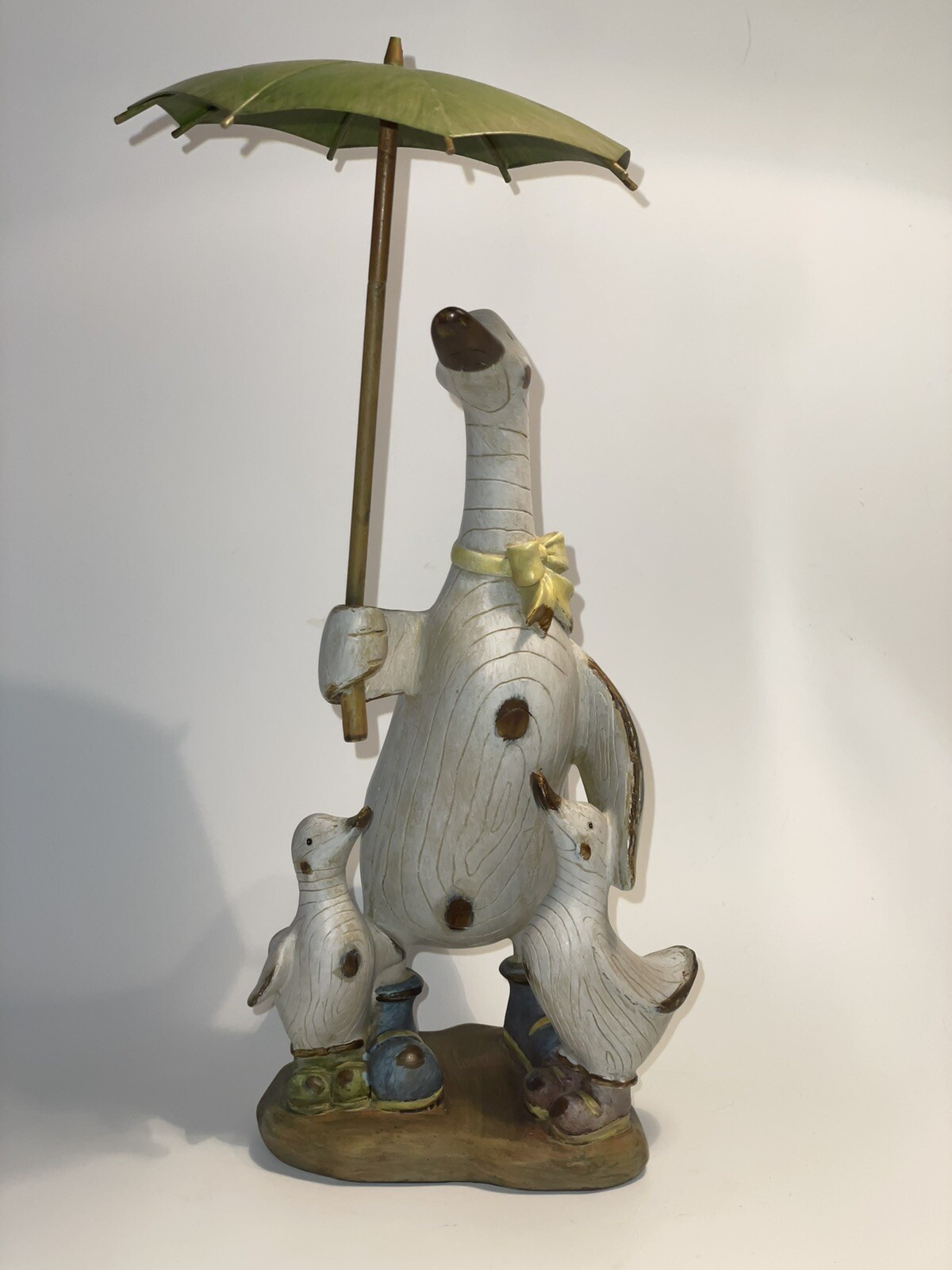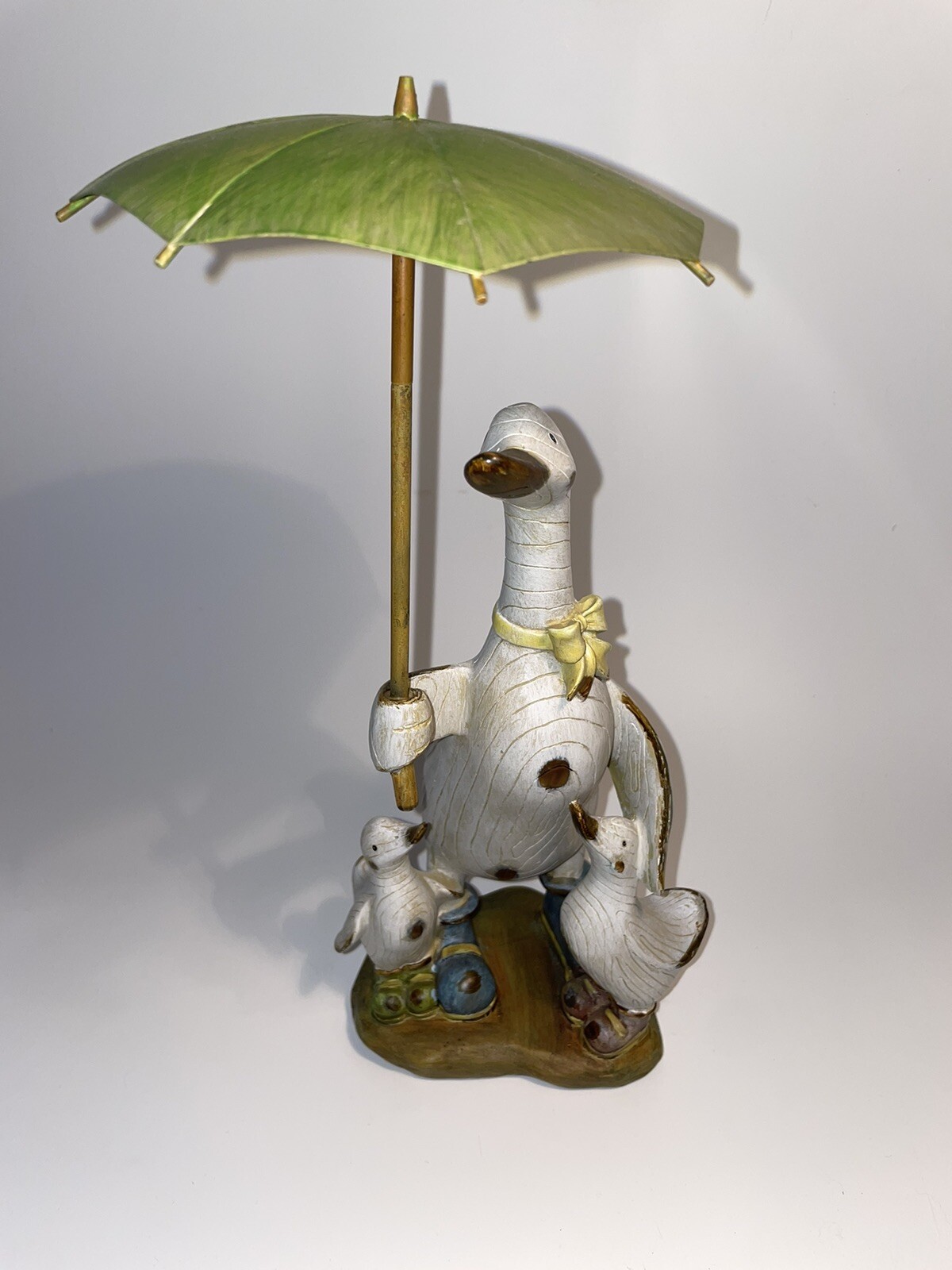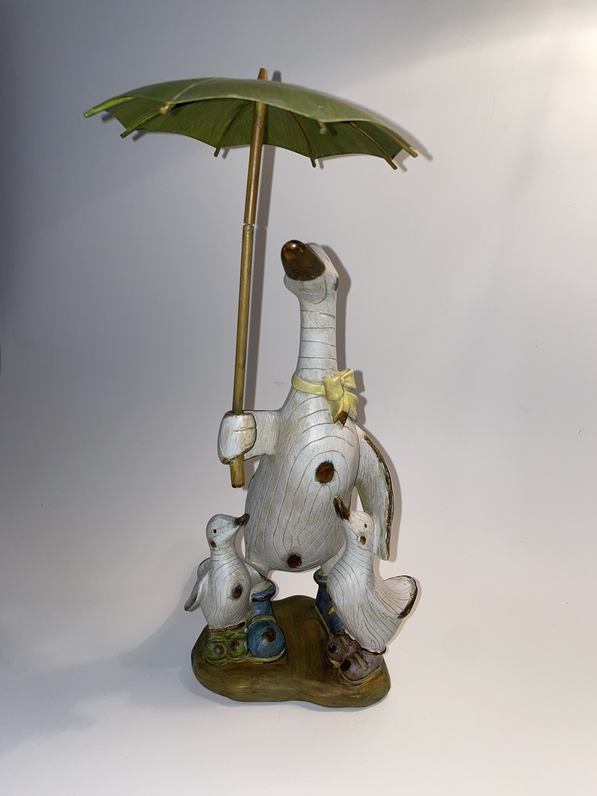 Parent Duck With Baby Ducks Umbrella Wearing Boots Hand Crafted Country Style