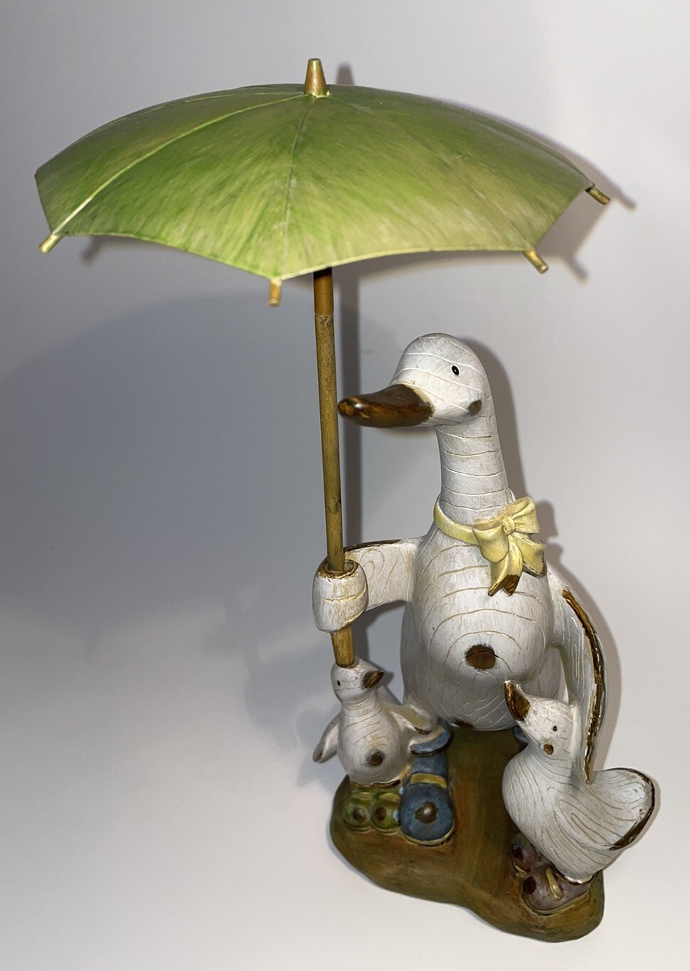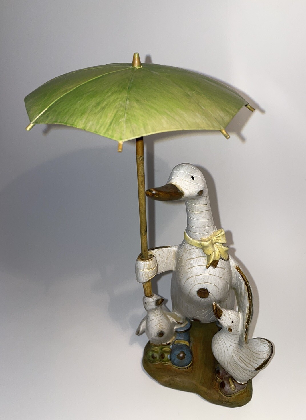 • Parent Duck With Baby Ducks Umbrella Wearing Boots Hand Crafted Country Style