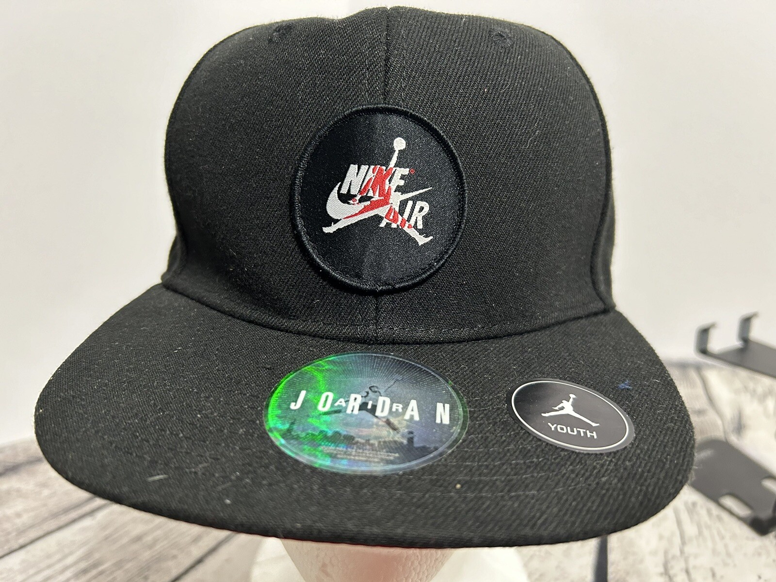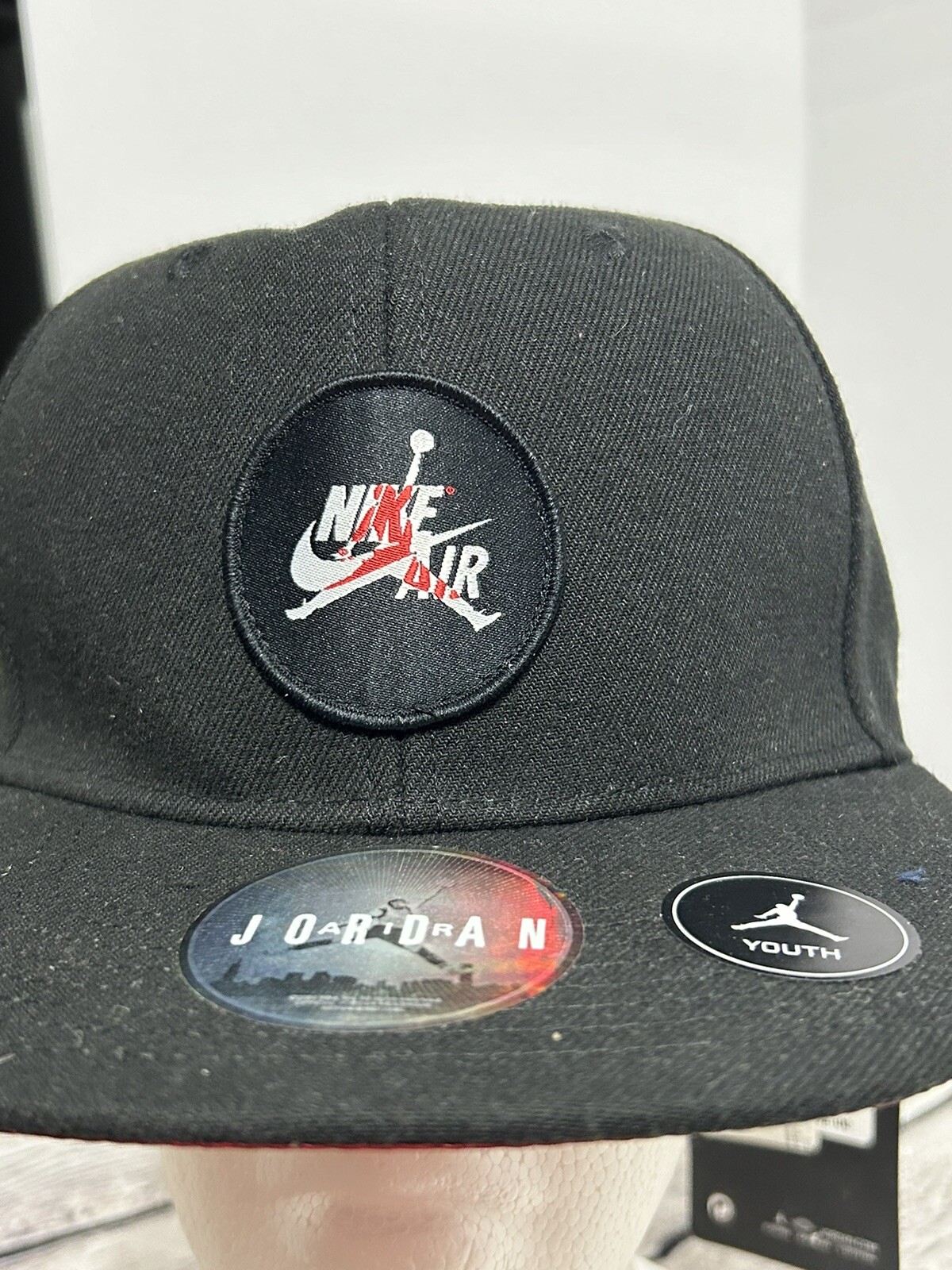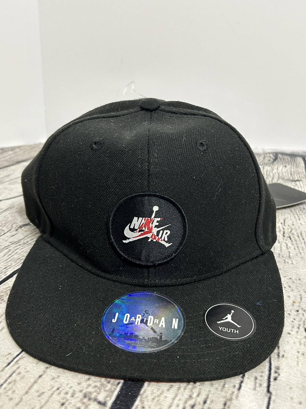 Air Jordan Jumpman Snapback Cap Hat Youth One Size Black Red Logo Flat Brim
