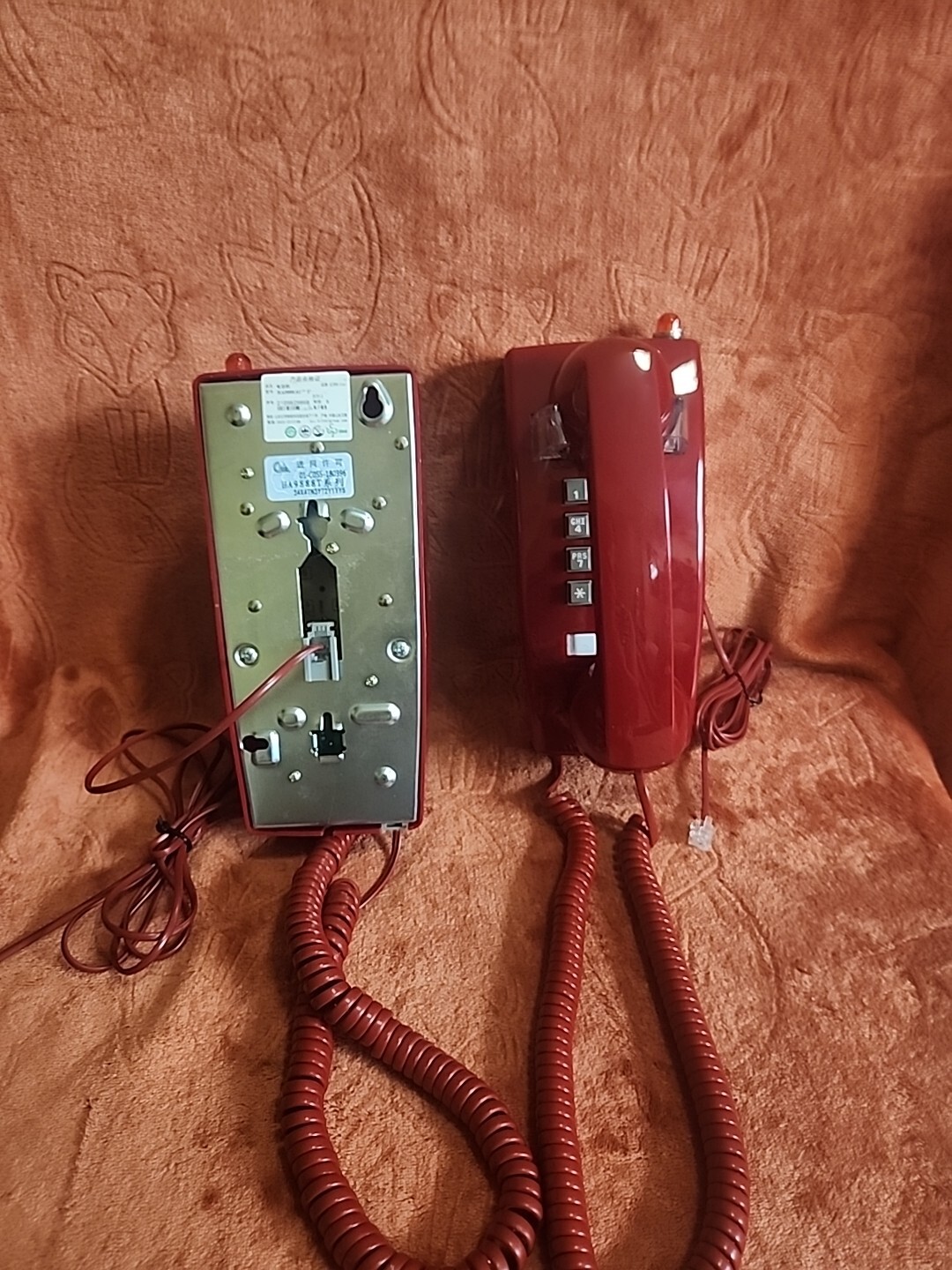 2 Vintage/Retro Wall Phones for Landline With Light Up Message Light. Red.
