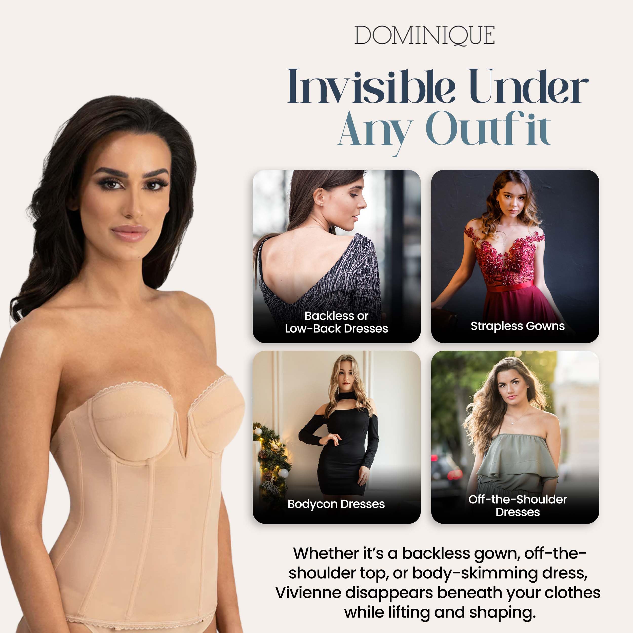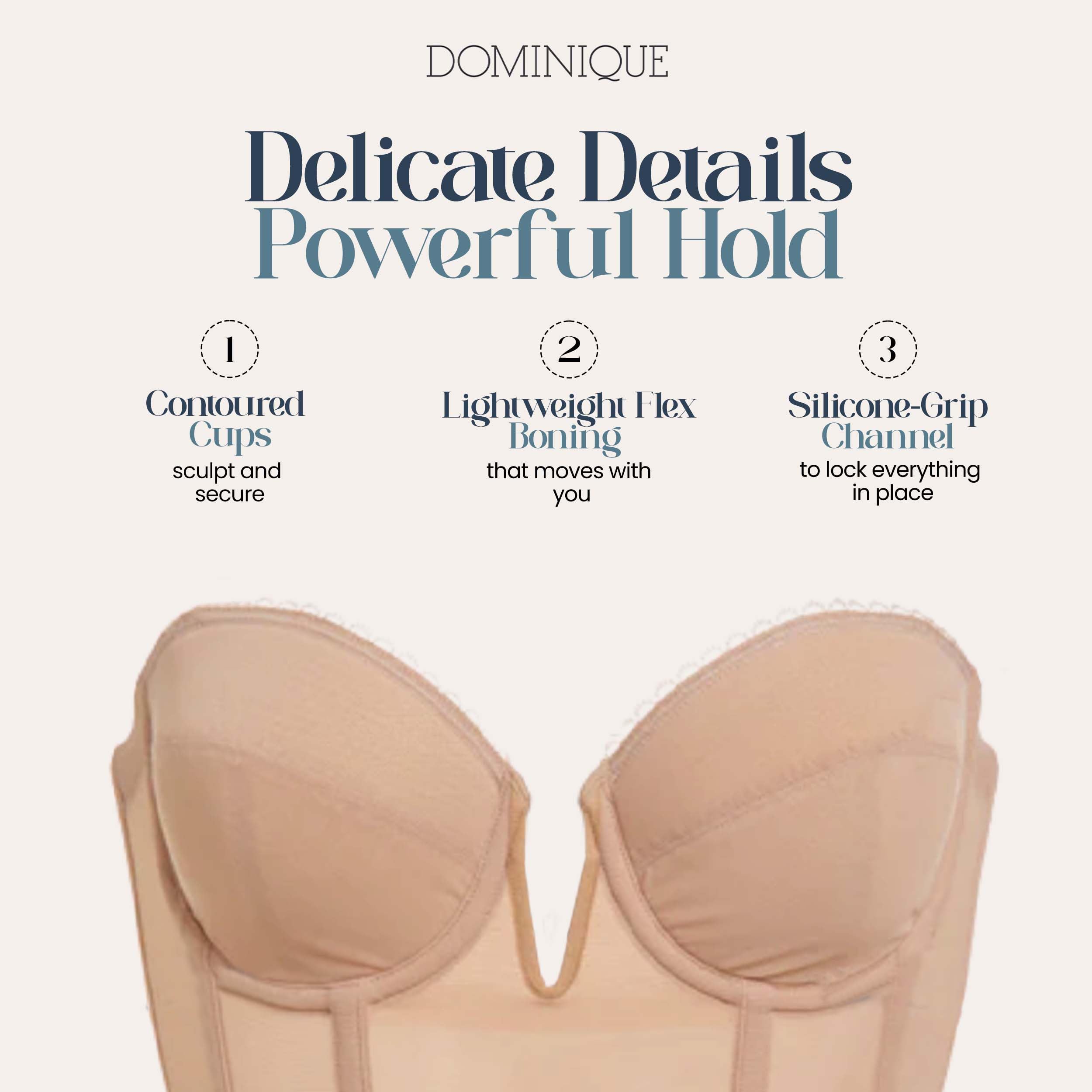 Dominique Women s Vivienne Strapless Longline Bra - V-Wire Bridal Corset Top,