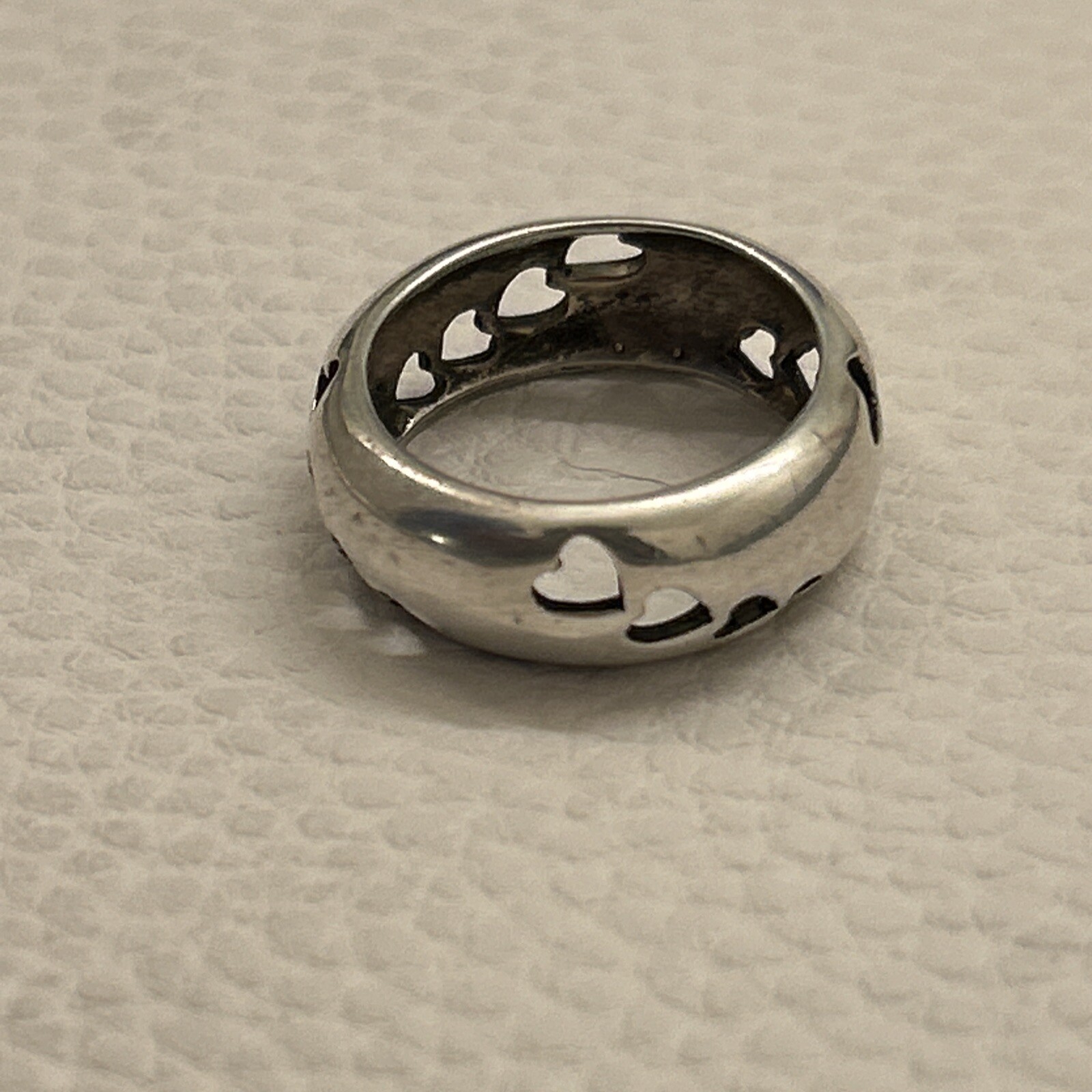 как выглядит Sterling Silver 925 Cute Heart Pierced Ring Wedding Band 7mm Size 7 TESTED фото