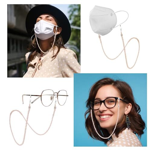 Glasses Chain, Pearl Eyeglass Chain, Beaded Eyeglass Chain Color Set A 3 Pcs