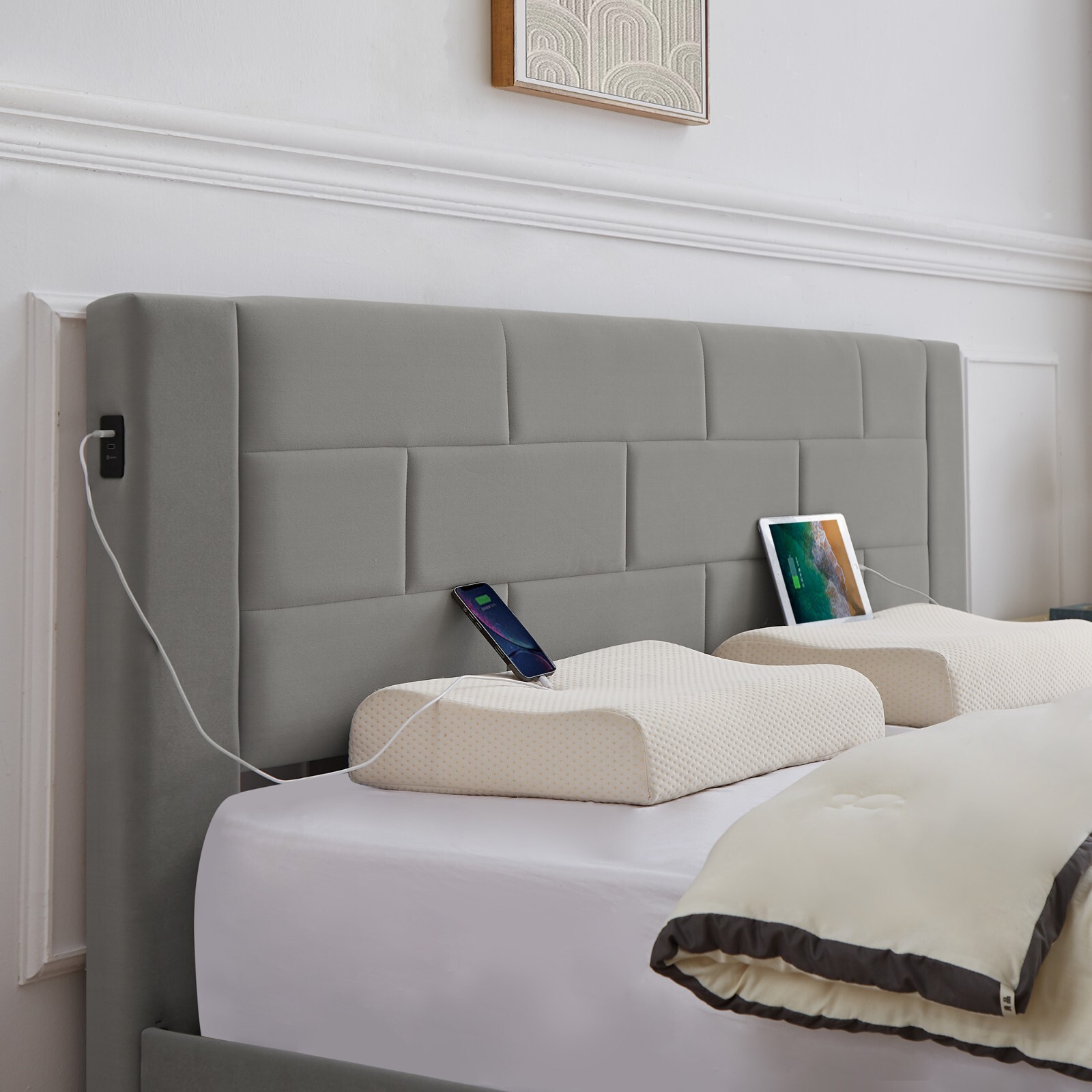 как выглядит Full/Queen/King Upholstered Bed Frame w/ 2 Side USB Ports and 4 Storage Drawers фото