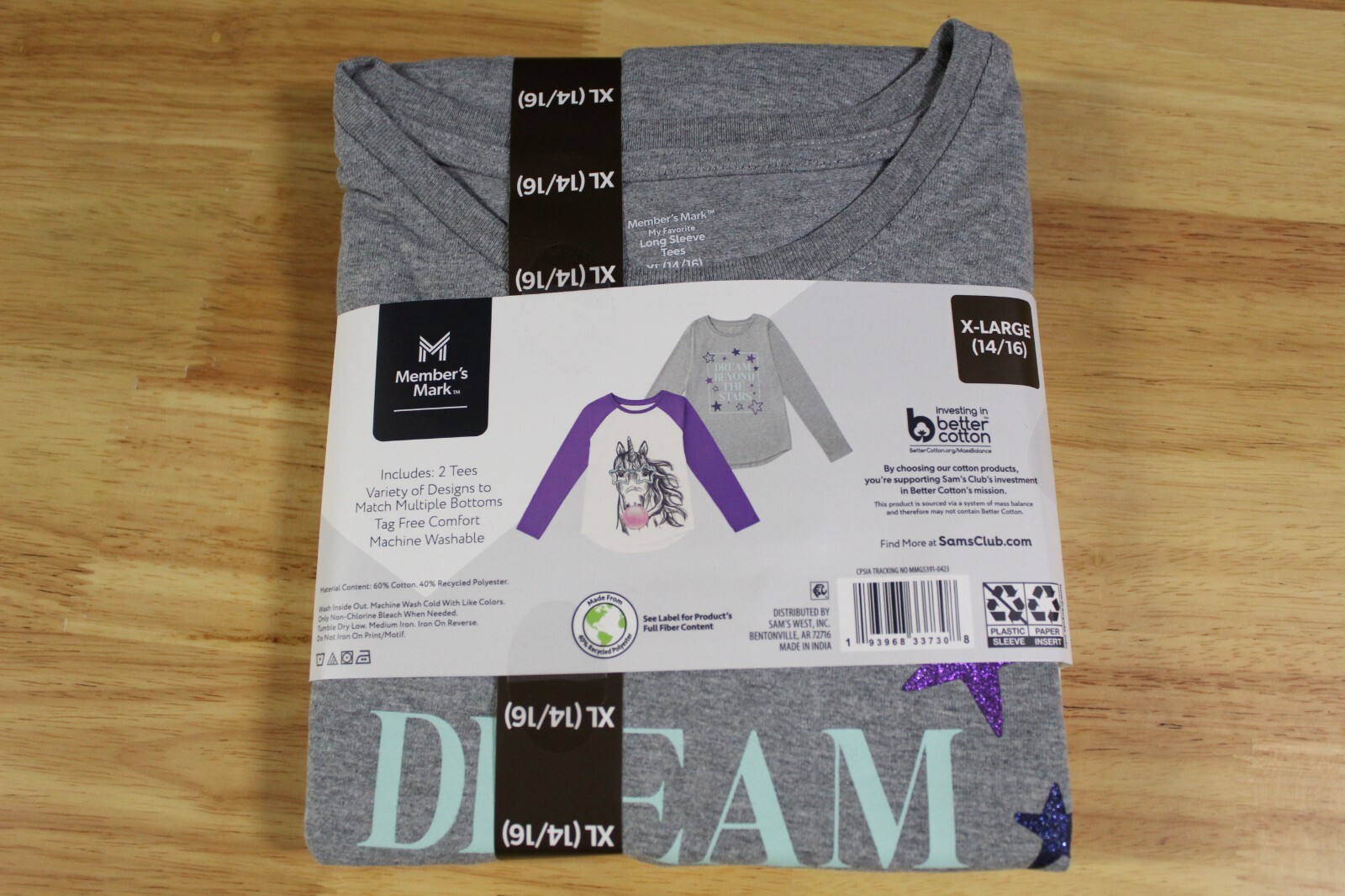 Member's Mark Girls 2 Pack Long SleeveGraphic Tee-Dream/Stars-XL 14/16 -NWT