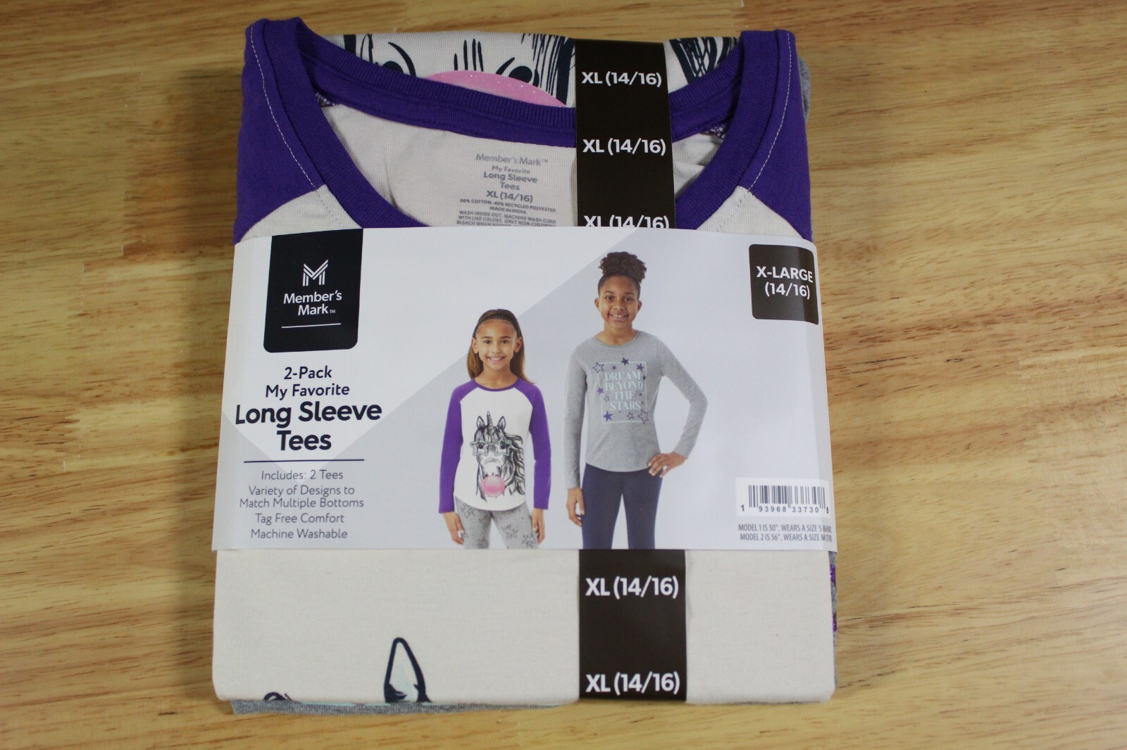 как выглядит Members Mark Girls 2 Pack Long SleeveGraphic Tee-Dream/Stars-XL 14/16 -NWT фото