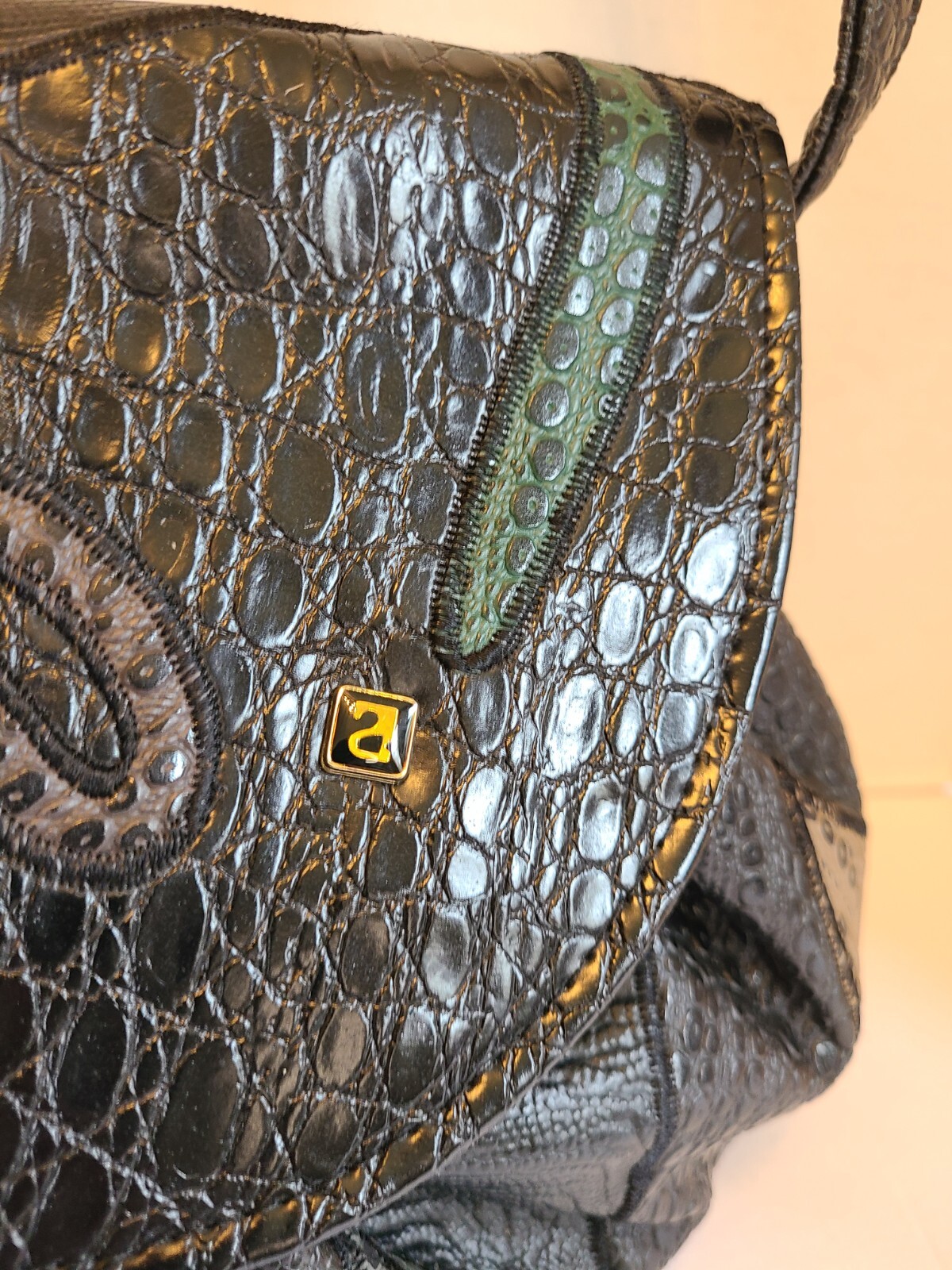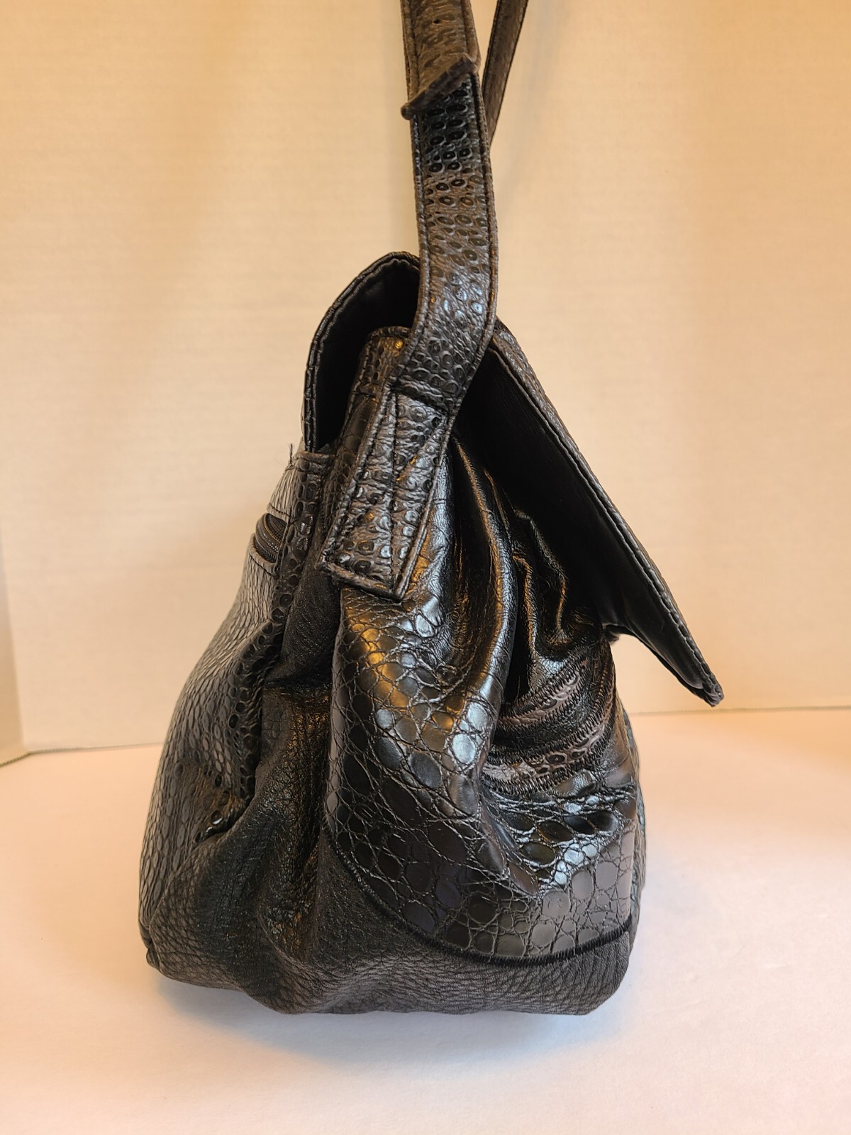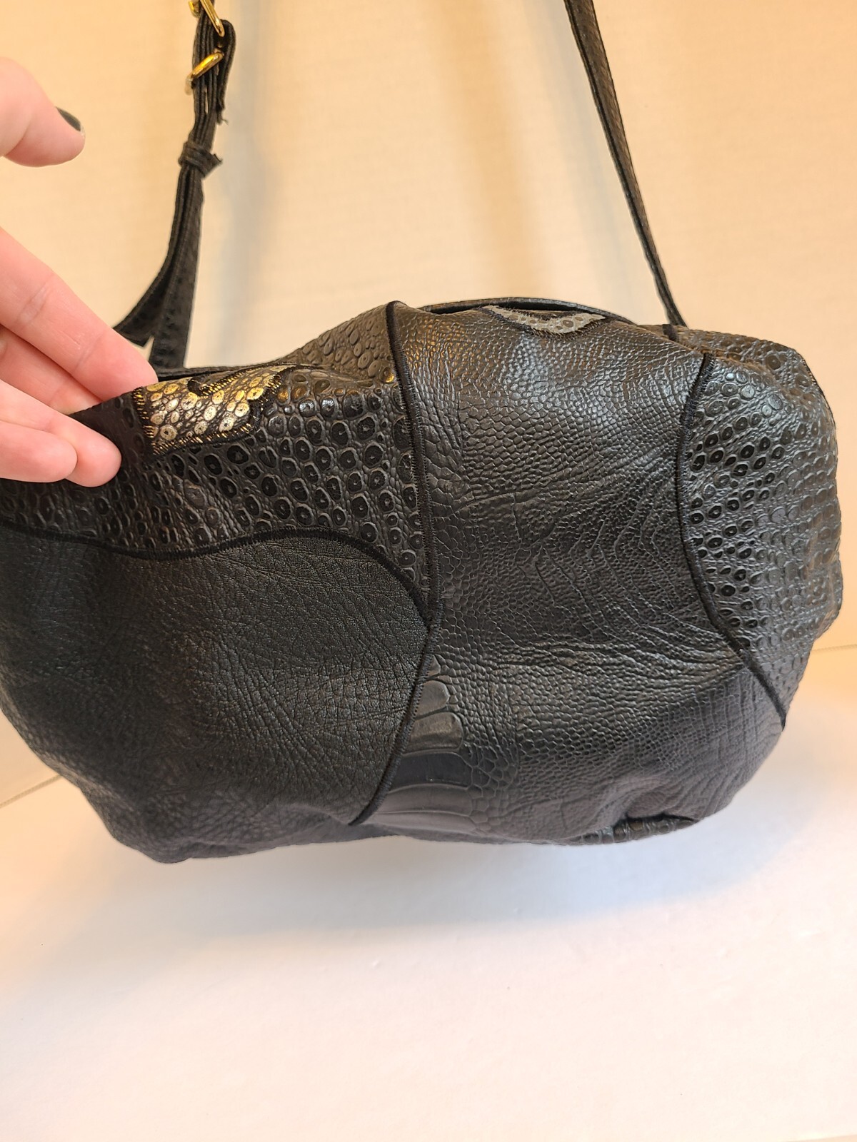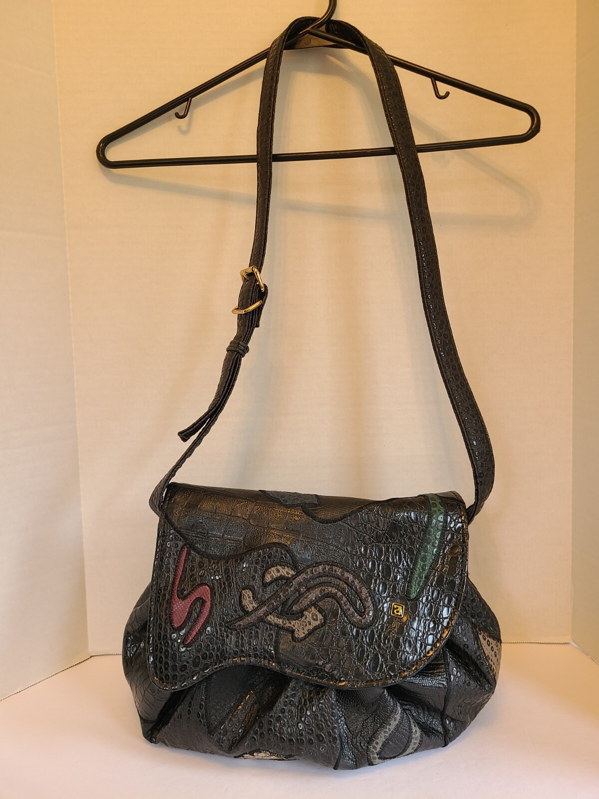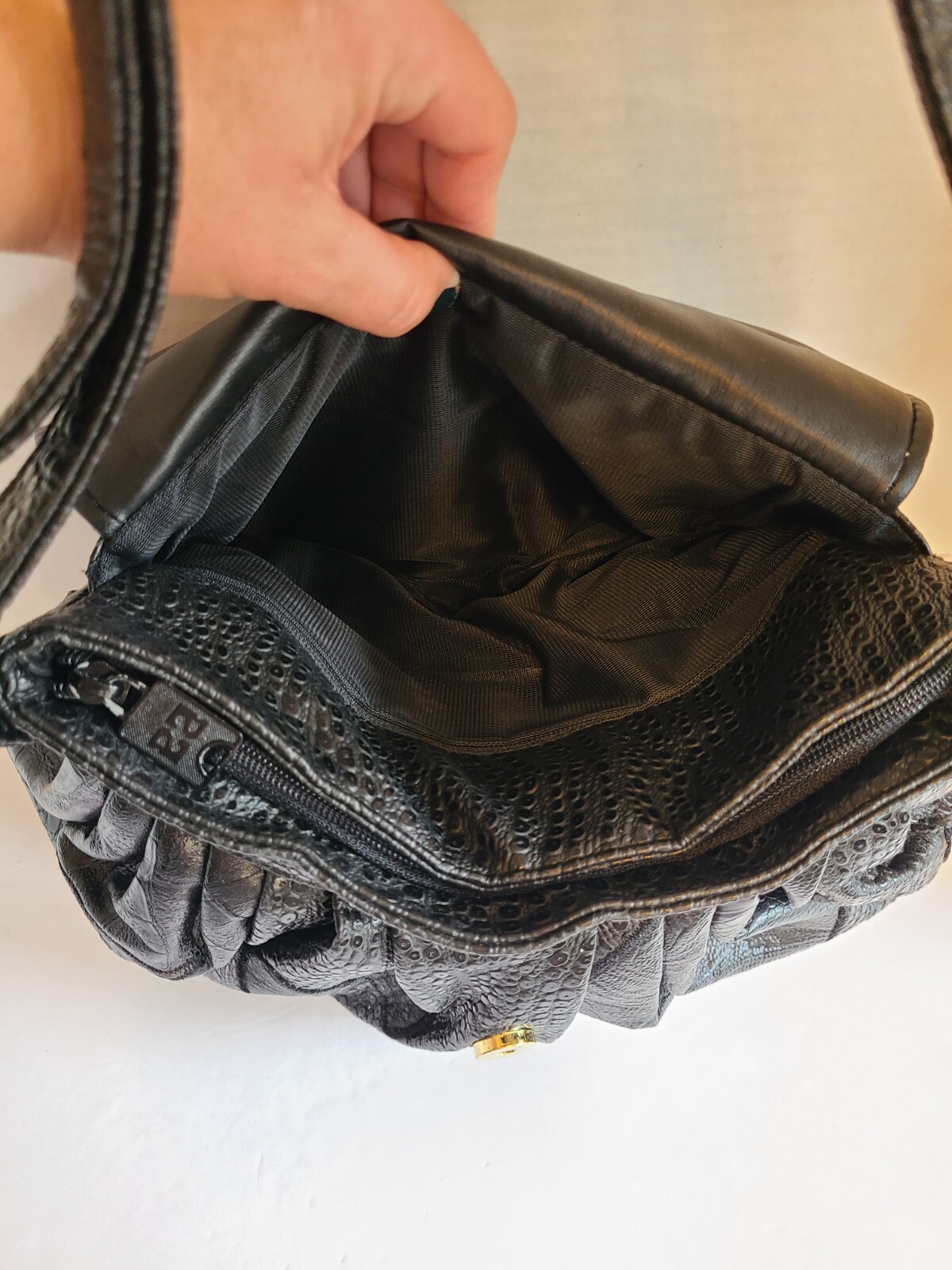 как выглядит Rare Vntg Black NAS Purse Shoulder Bag Vegan Pre-Owned Korea 1980s фото