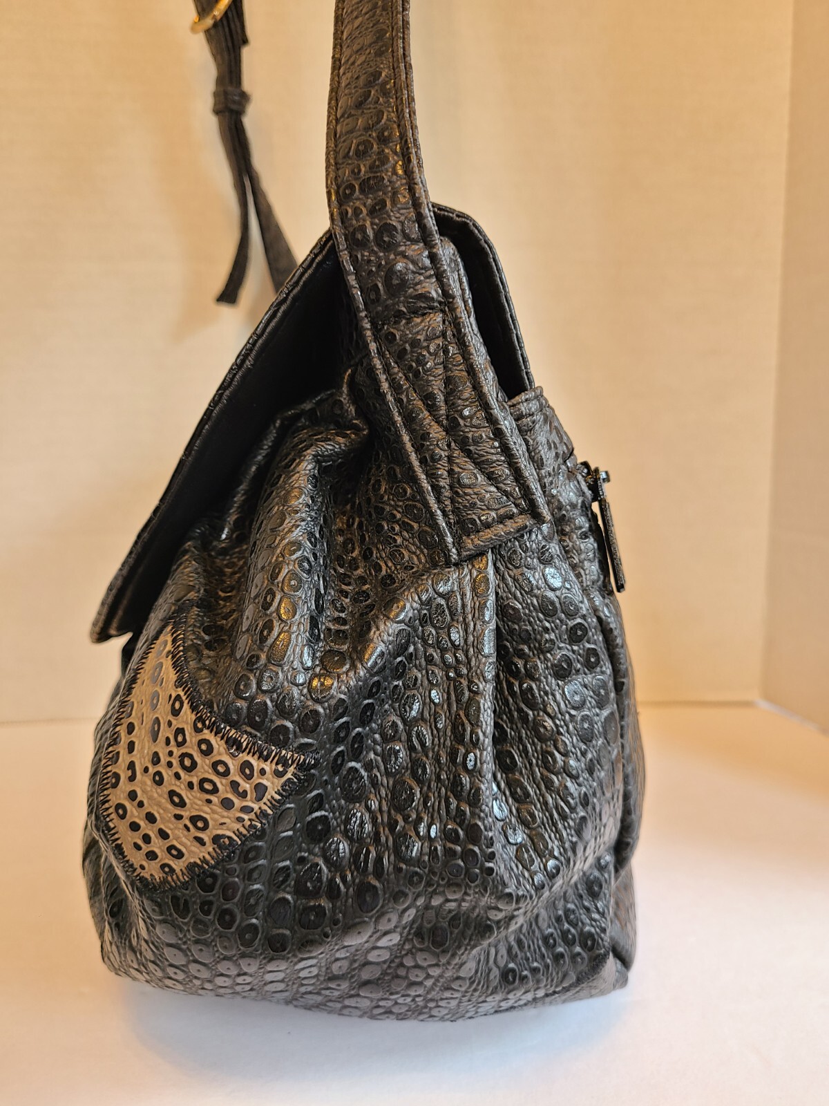 Rare Vntg Black NAS Purse Shoulder Bag Vegan Pre-Owned Korea 1980s