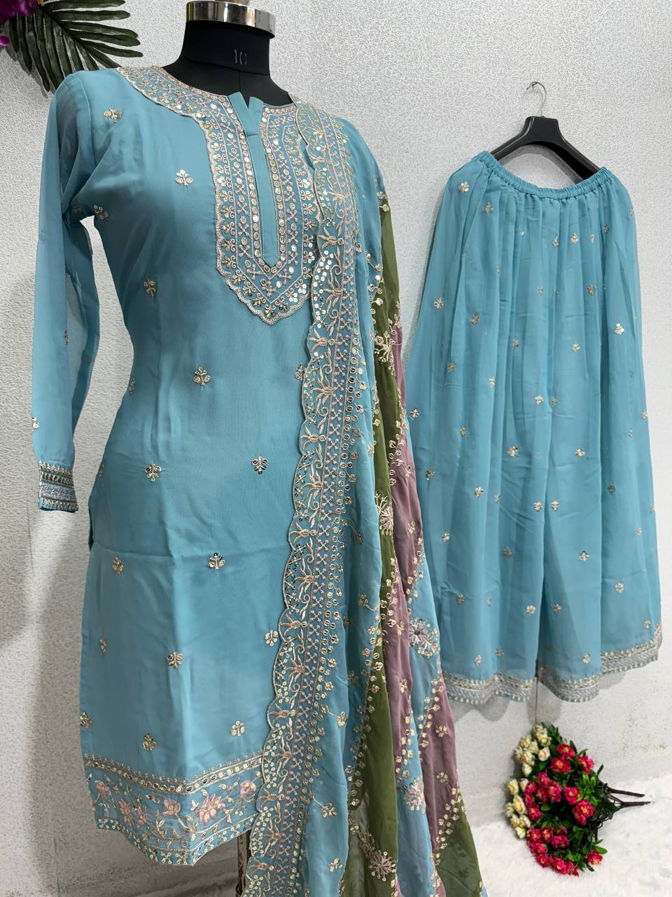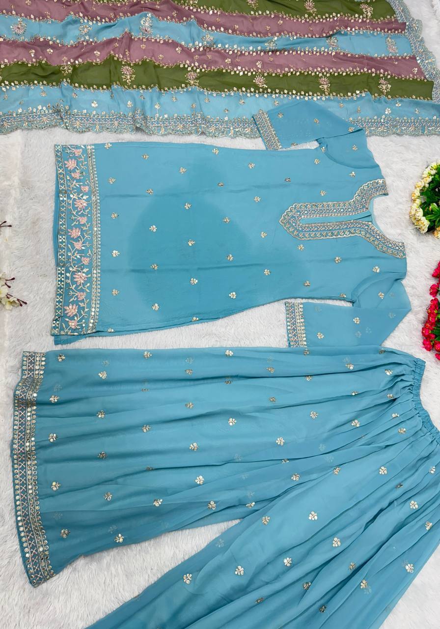 INDIAN PAKISTANI STYLE TOP AND PALAZZO WITH BEAUTIFUL DUPATTA FOR RECEPTION WEAR