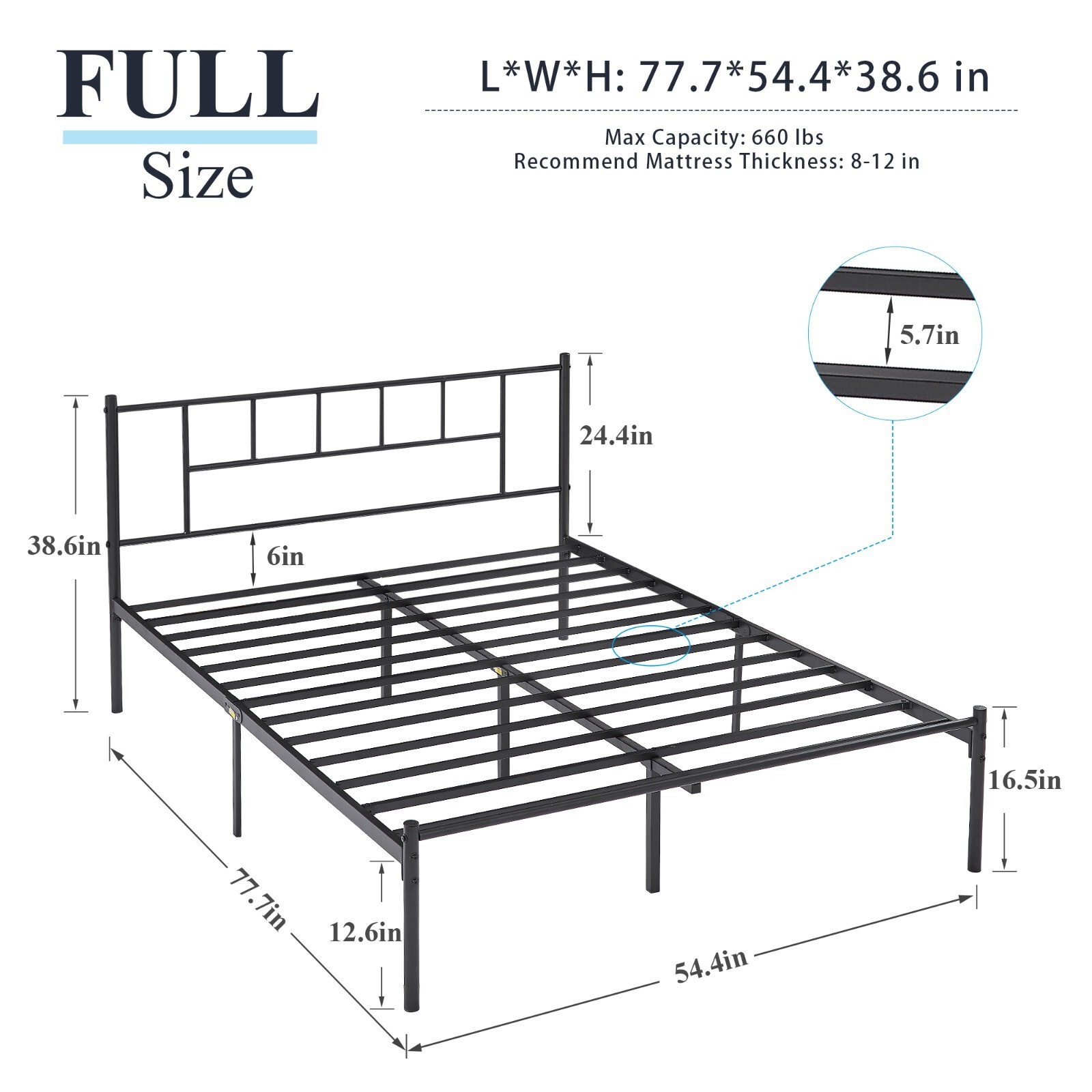 VECELO Metal Bed Frame Twin/Full/Queen Size with Headboard Metal Slat Support
