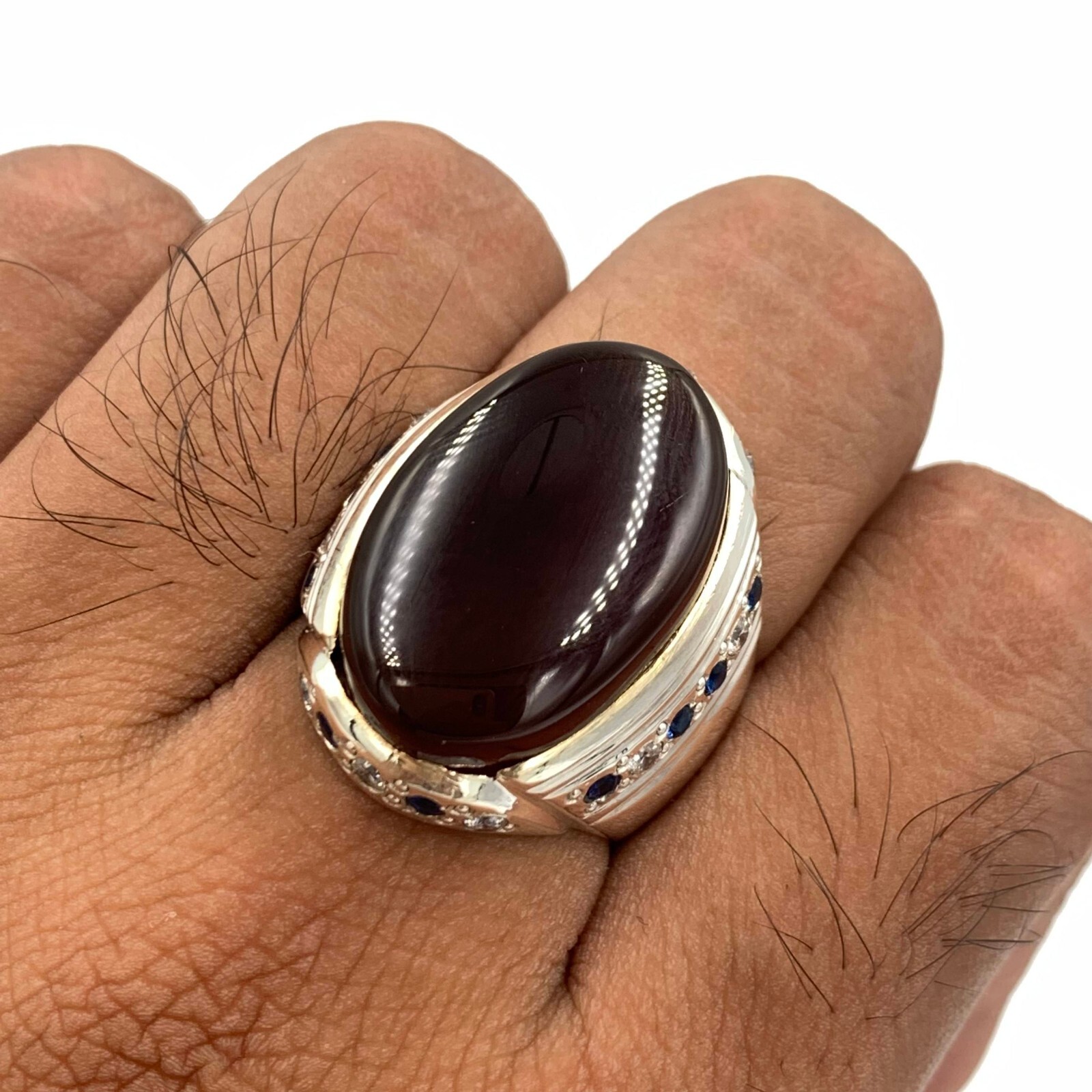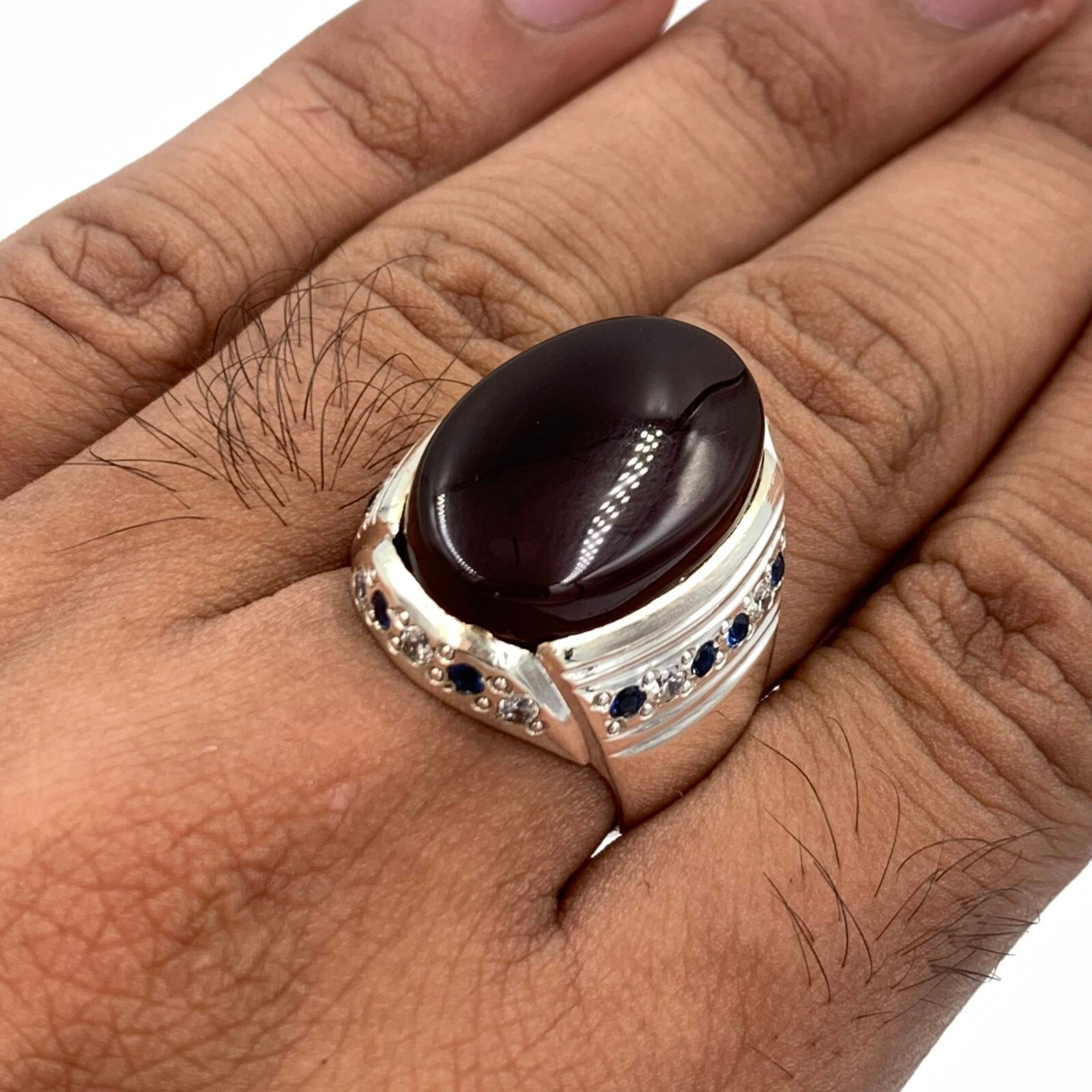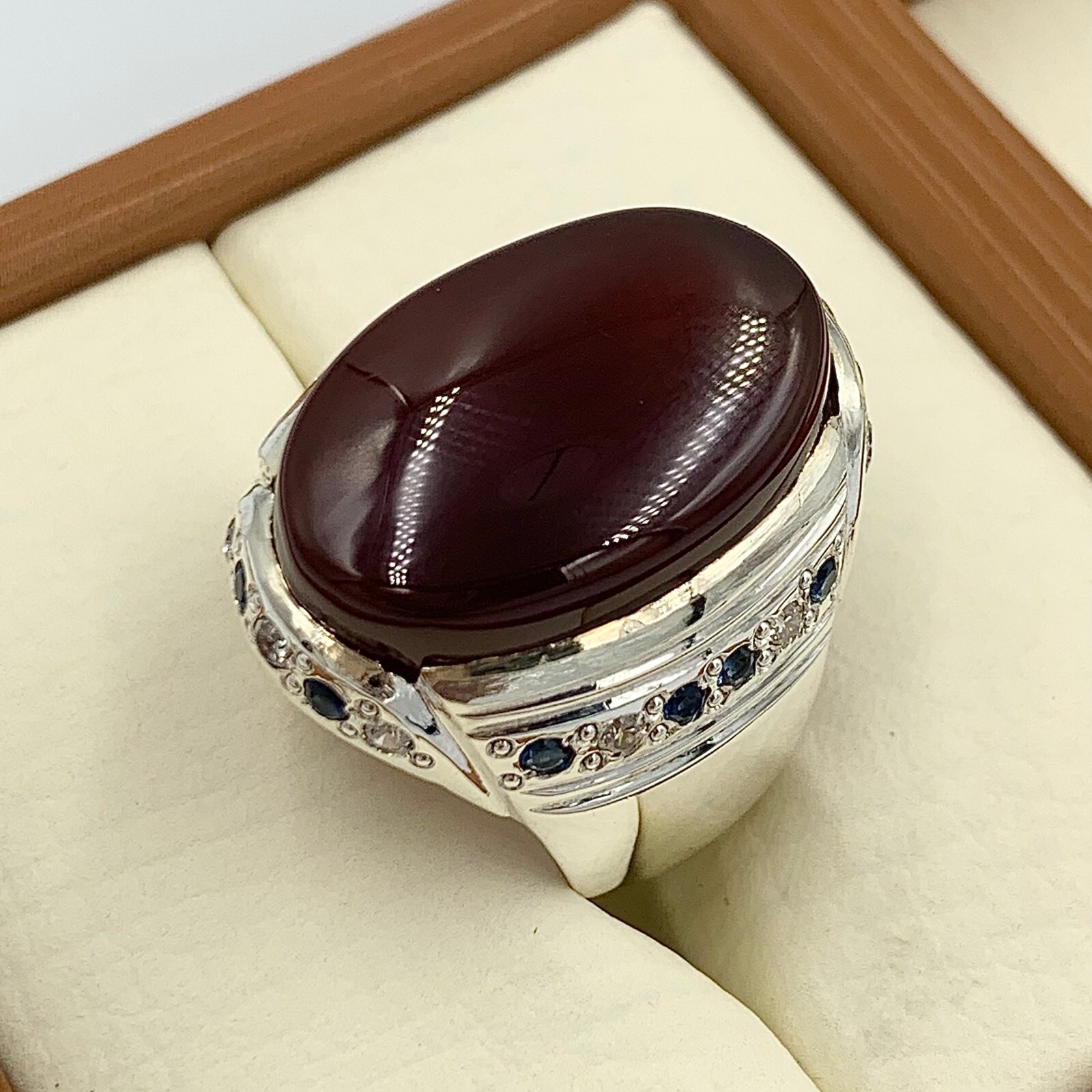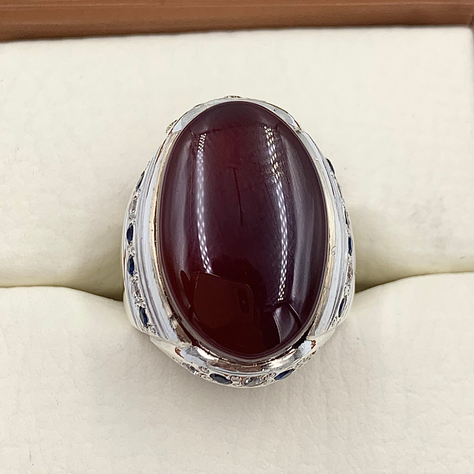 как выглядит Blood Red Aqeeq Ring For Men, 925 Sterling Silver Natural Agate Ring, Akik Ring фото