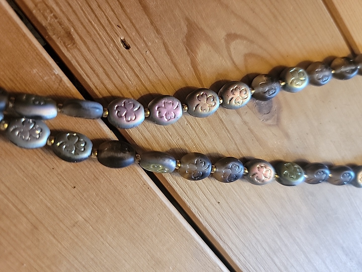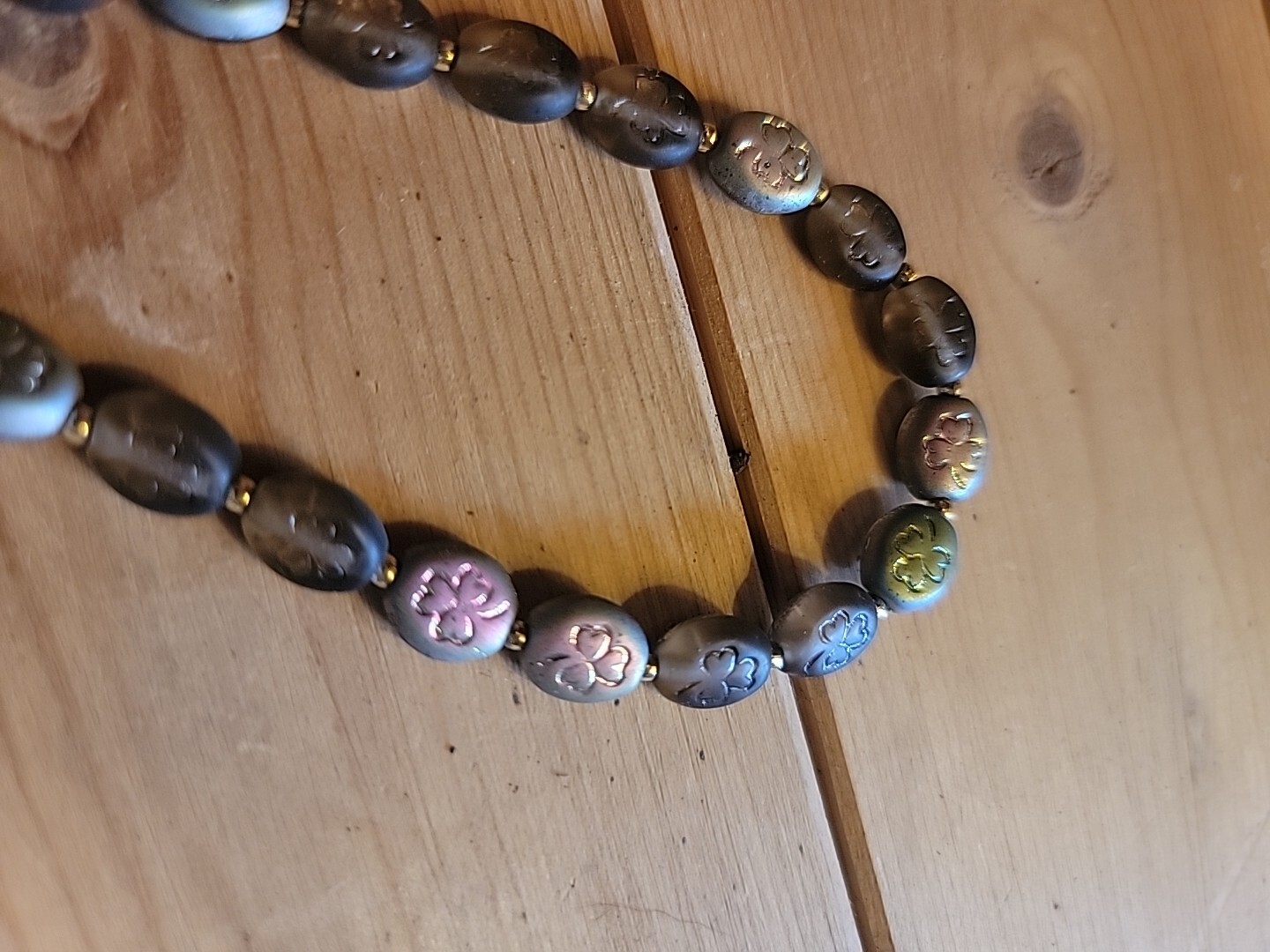 35 Dark Iridescent Shamrock Glass Beads
