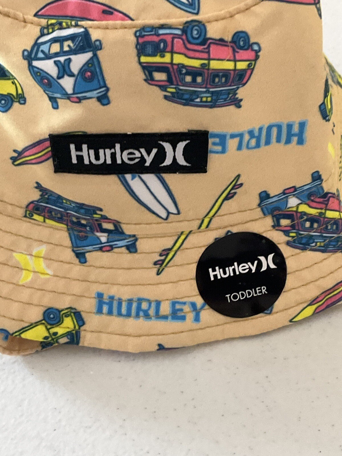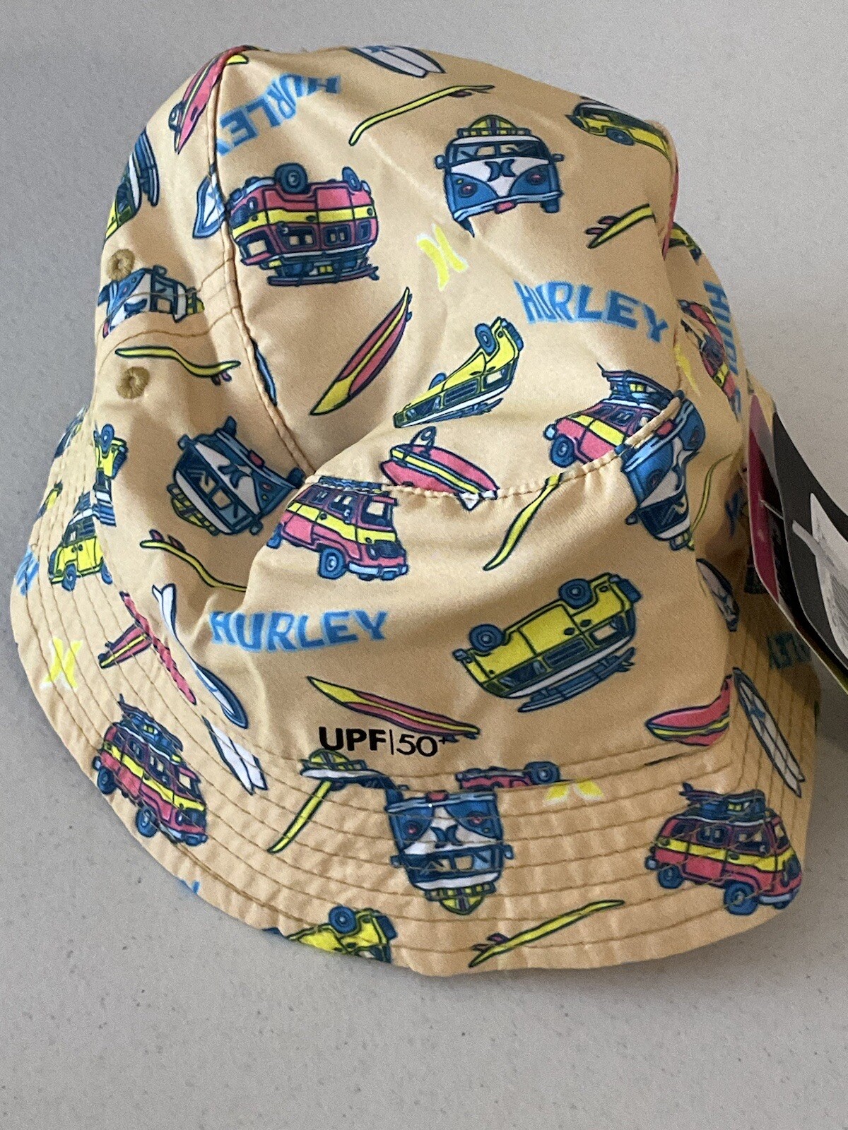 Hurley, Boys Sz 2-4T, Bucket Sun Hat, UPF 50 , w/Chin Strap in Beach Print. NEW