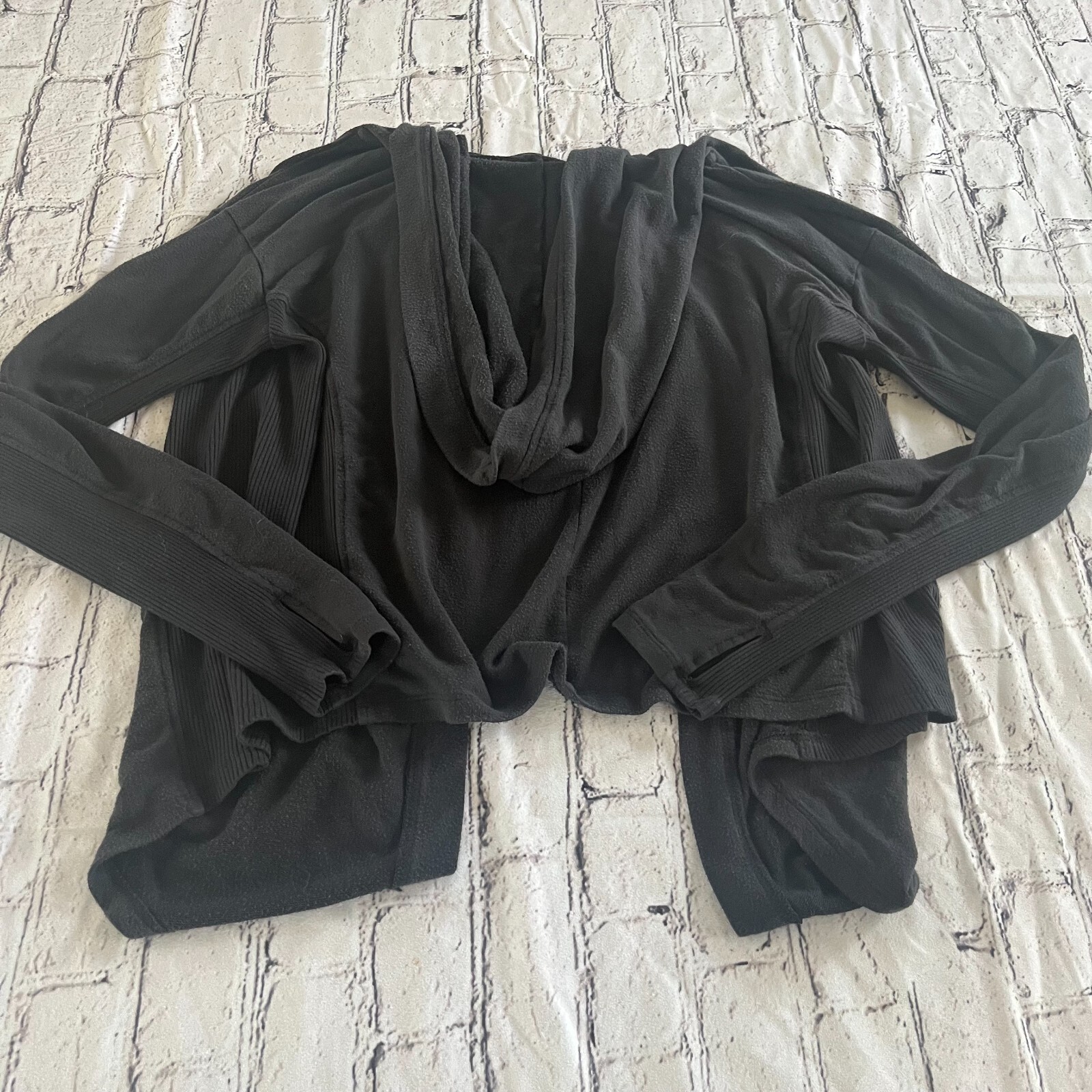 как выглядит Athleta Nirvana Wrap Black Small Hooded Thumbholes Soft Athleisure фото