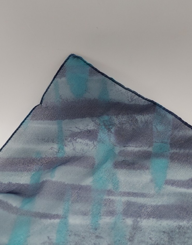 как выглядит Vintage Elegant Sheer Navy And Teal Scarf Made In Italy 57" X 11" фото