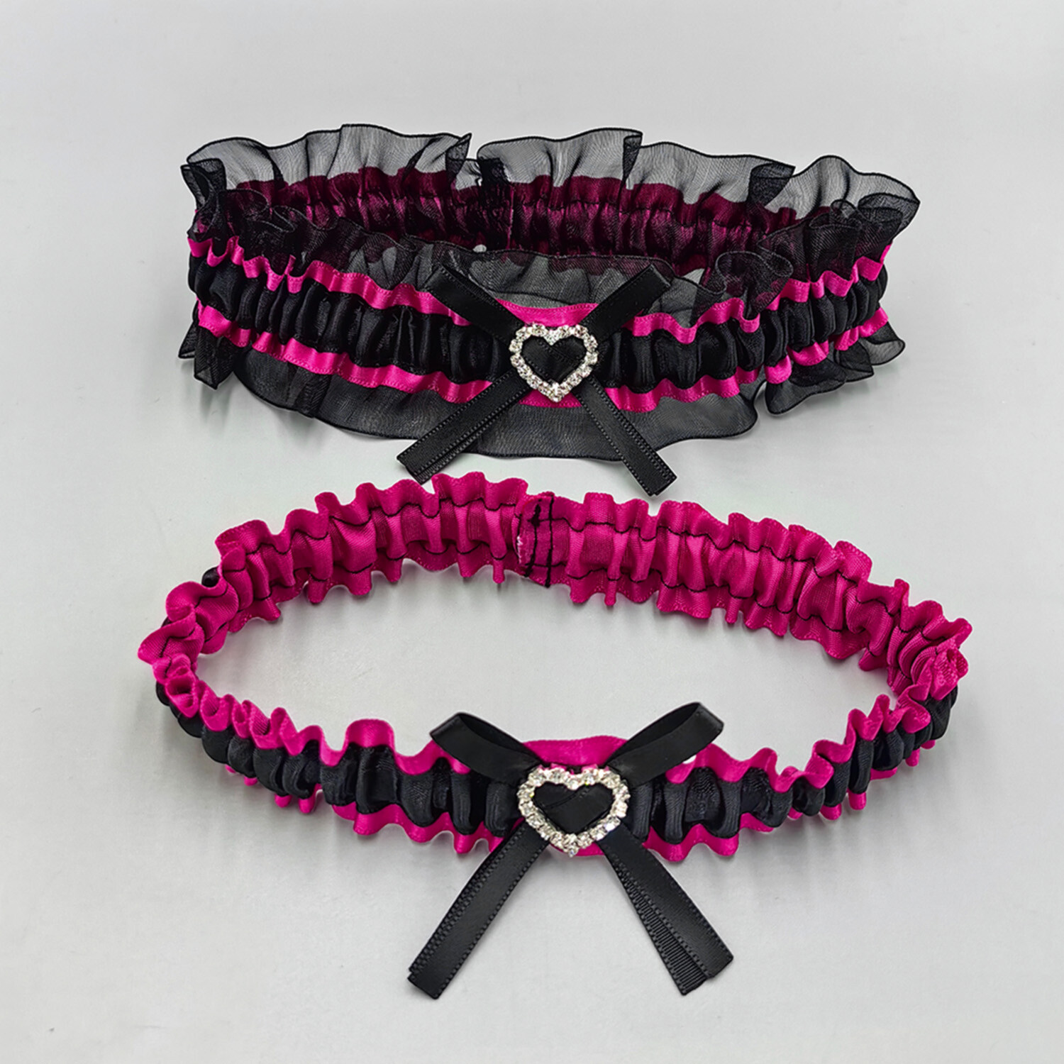 Hot Pink and Black Wedding Garter Belt Set Bridal Garters for Bride Leg Garter