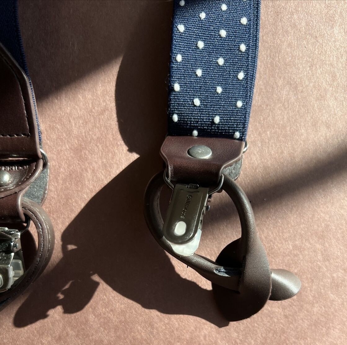 Gutteridge Navy Blue Suspenders With White Polkadots