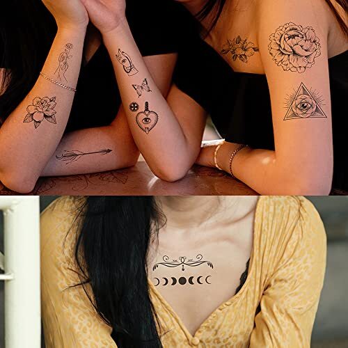 как выглядит 330 Realistic Black Temporary Tattoos for Adults, 60 Pcs Vintage Gothic фото
