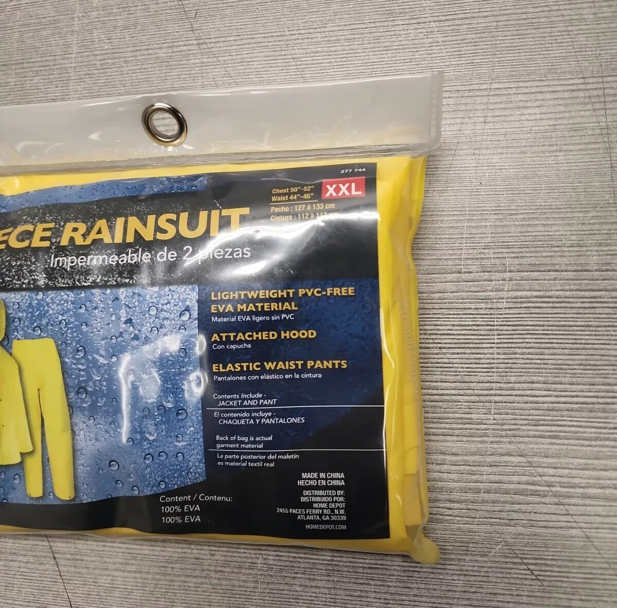 NEW 2-Piece Rainsuit With Hood Lightweight Polyester Yellow - Size XXL