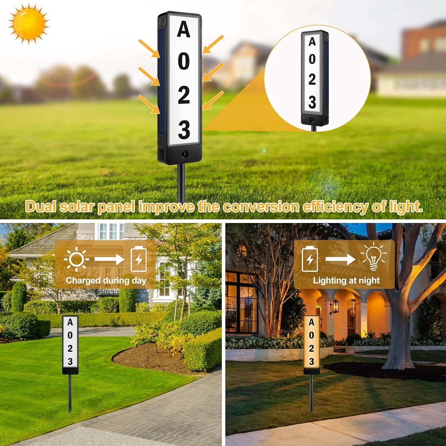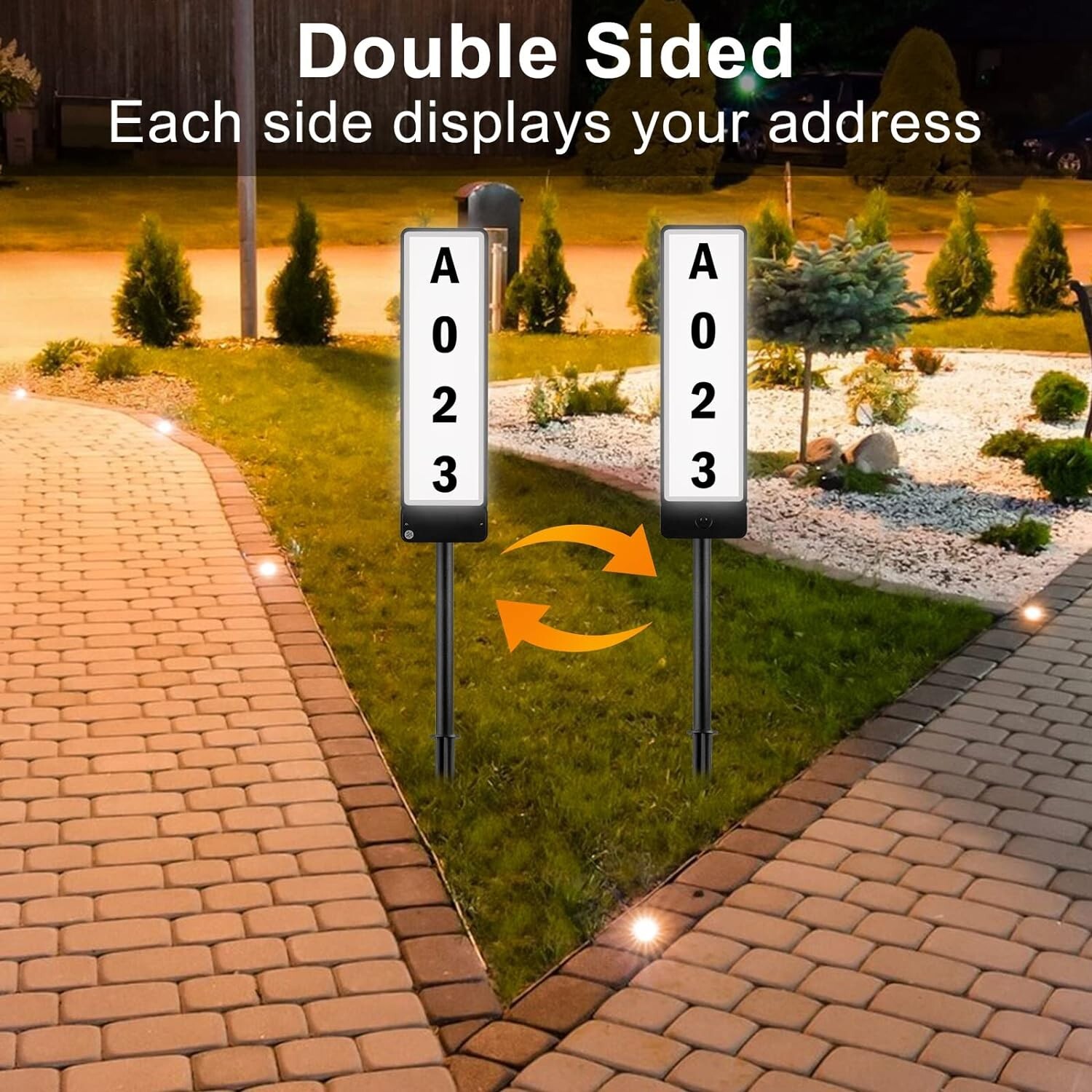 Double Sided Solar Address Sign, Lighted House Numbers for Outside Address