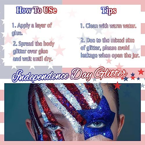 Independence Day Body Glitter, 2 Jars Red Blue White Chunky Circus Carnival