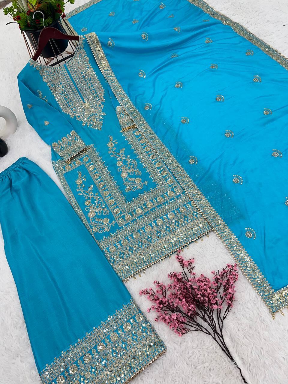 TRADITIONAL WEAR PURE CHINNON SILK TOP PALAZZO WITH DUPATTA FOR WOMEN AND GIRLS