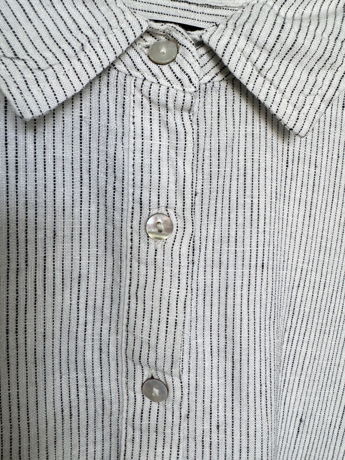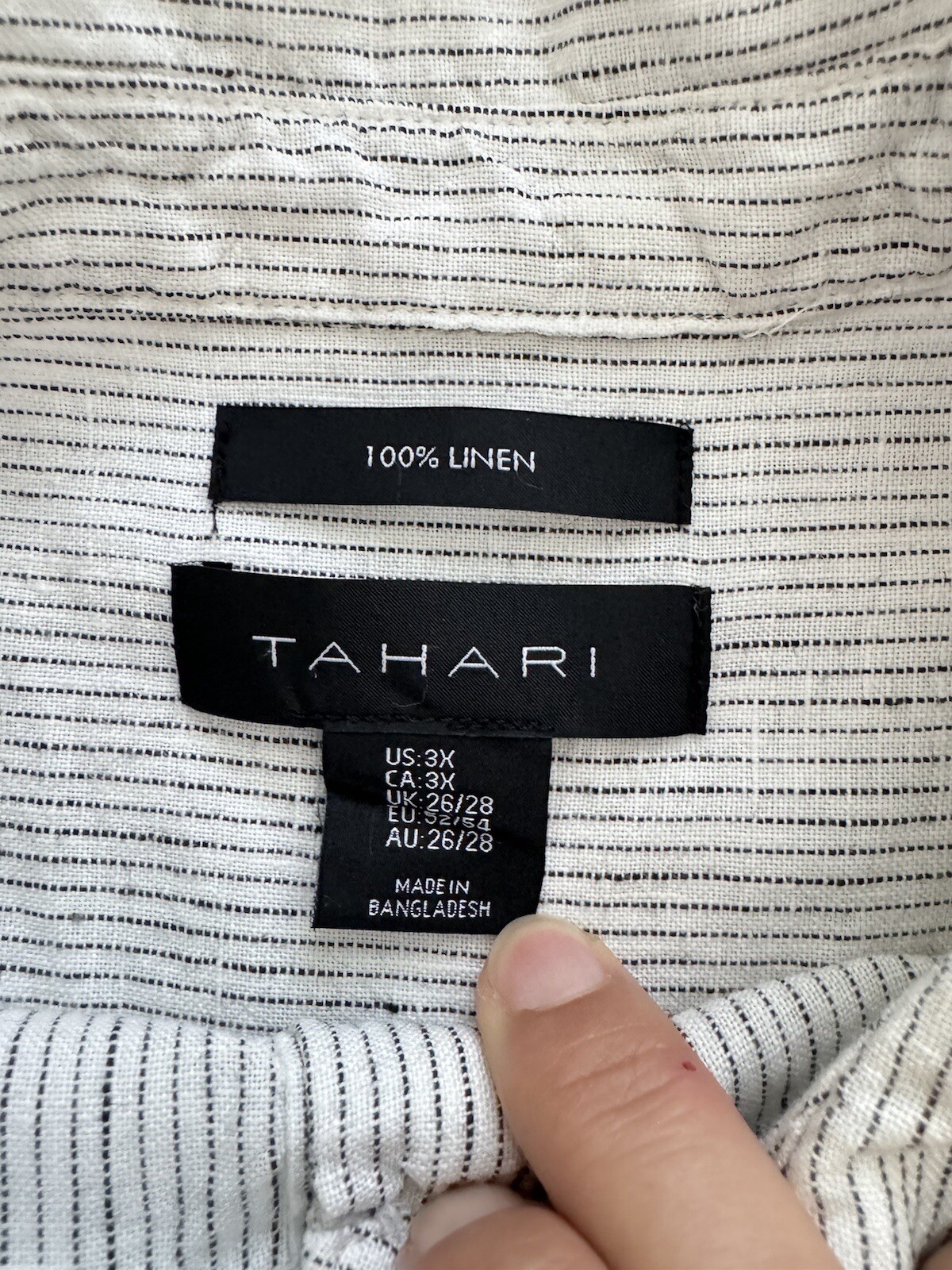 Tahari Womens 3X Linen Collared Button Shirt Dress White Black Strips Coastal