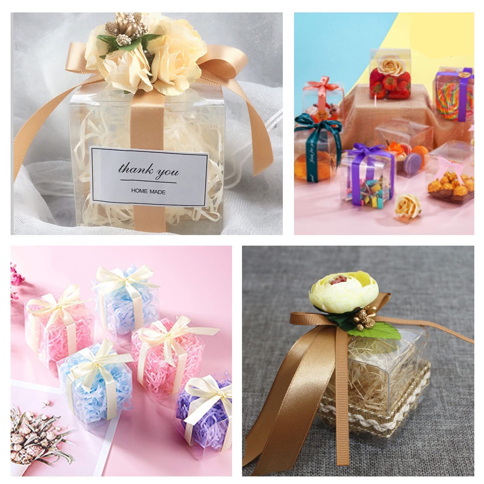 100 Pcs 2 Inch Mini Clear Favor Gift Boxes w/ Ribbon for Candy Treats Chocolate