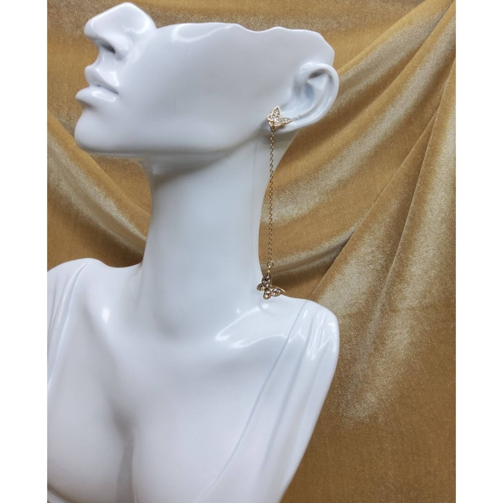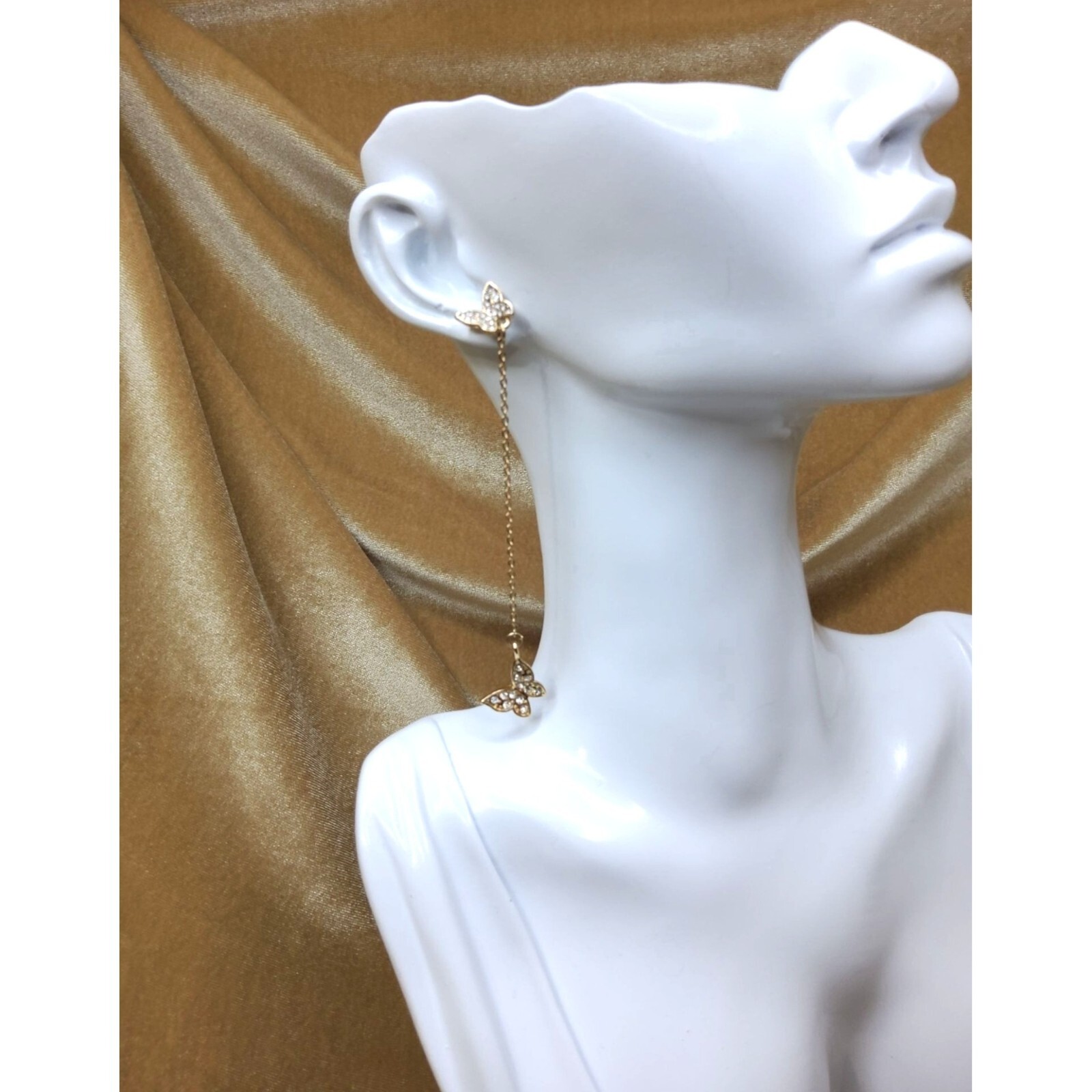 как выглядит Vintage Gold Tone Crystal Butterfly Drop Pierced Earrings фото