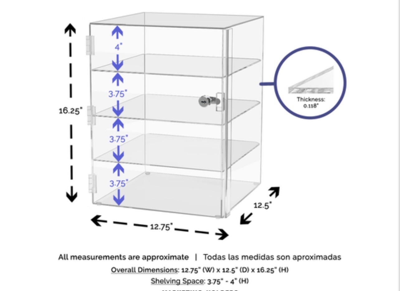 Acrylic Countertop Display Case 12 x 12 x 16 Locking Showcase