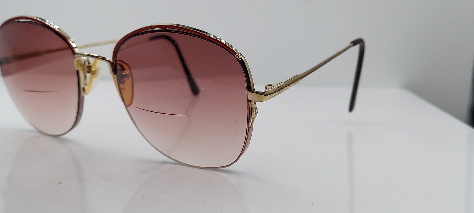 как выглядит Vintage NW8006R Gold Red Oval Half-Rim Metal Sunglasses FRAMES ONLY фото
