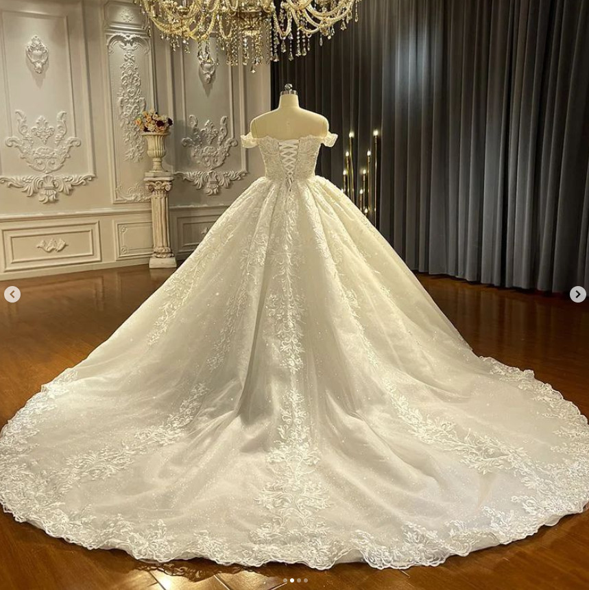 Princess Wedding Dresses Off the Shoulder Court Train Appliques Bridal Gowns