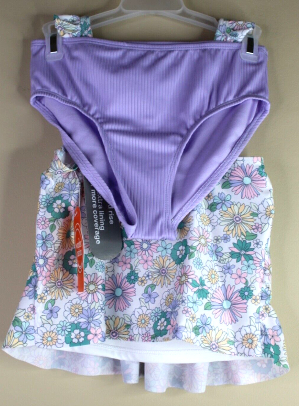 Wonder Nation Girls Tankini Swimsuit Lavender Sky Floral UPF 50 Size M 7-8