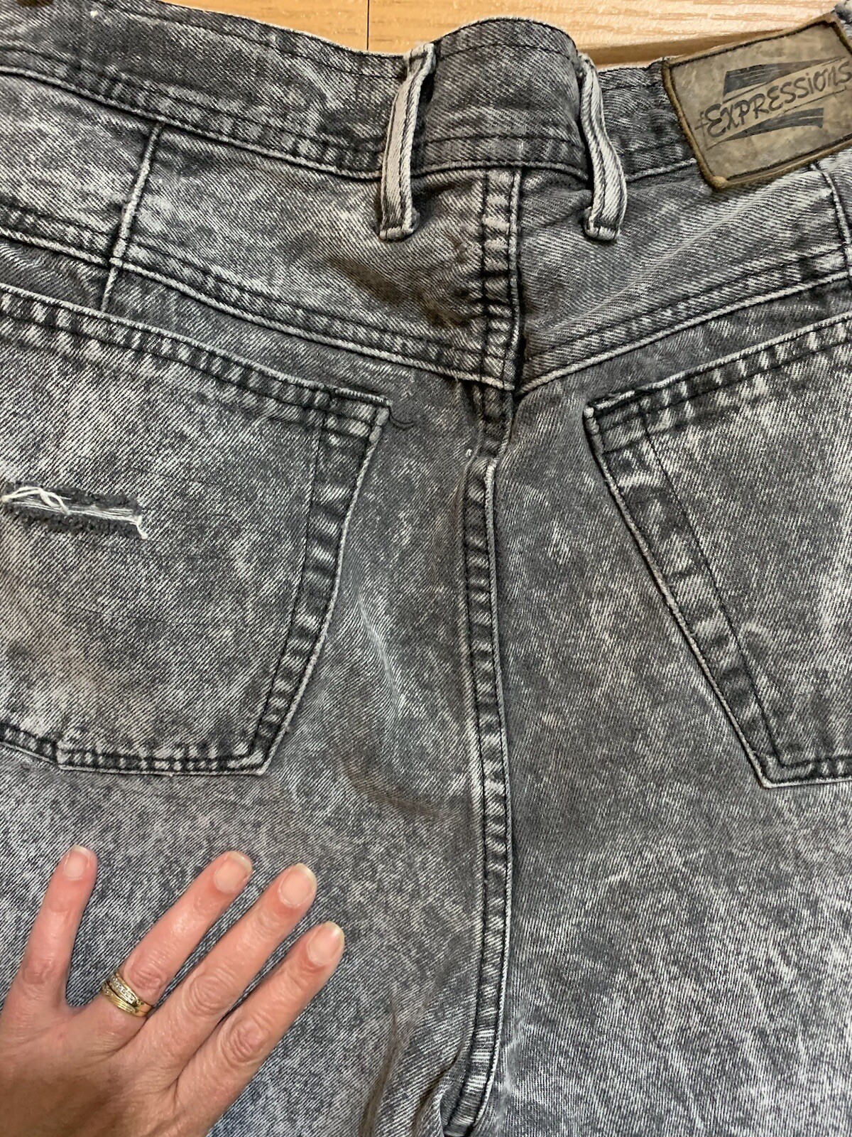 как выглядит Vintage 90s Denim Distressed Acid Washed High Rise Cut Off Shorts фото