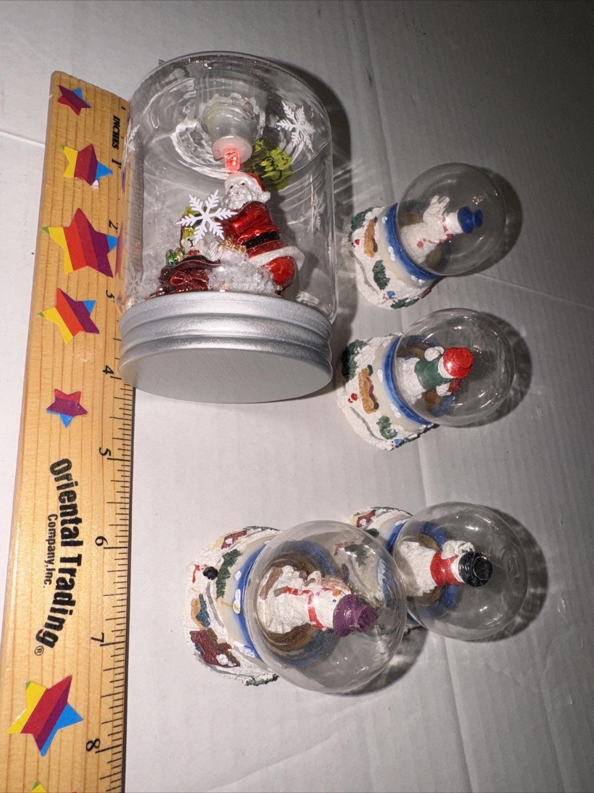 Lot Of 5 Snow Globes, Battery Operated Light Santa Claus Glass W/ 4 Snowman Too