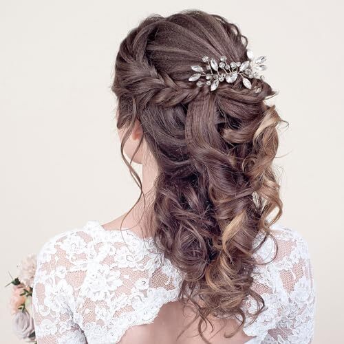 2PCS Silver Rhinestone Hair Combs, Clear Rhinestones Metal Bridal Hair Comb,