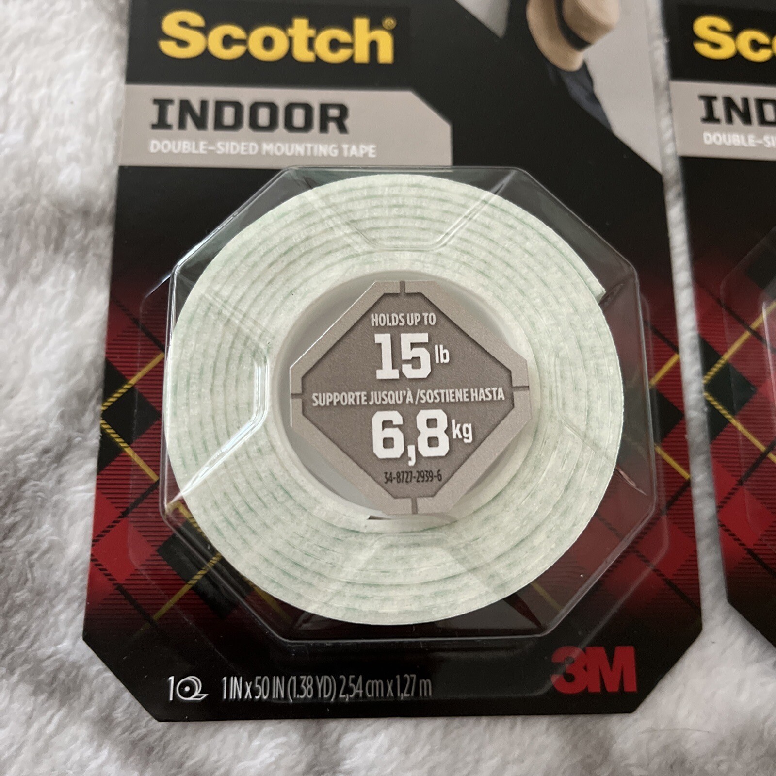 2pk Scotch Indoor Mounting Tape 1-in X 50-in, White, 1 Roll Holds up to 15 lbs