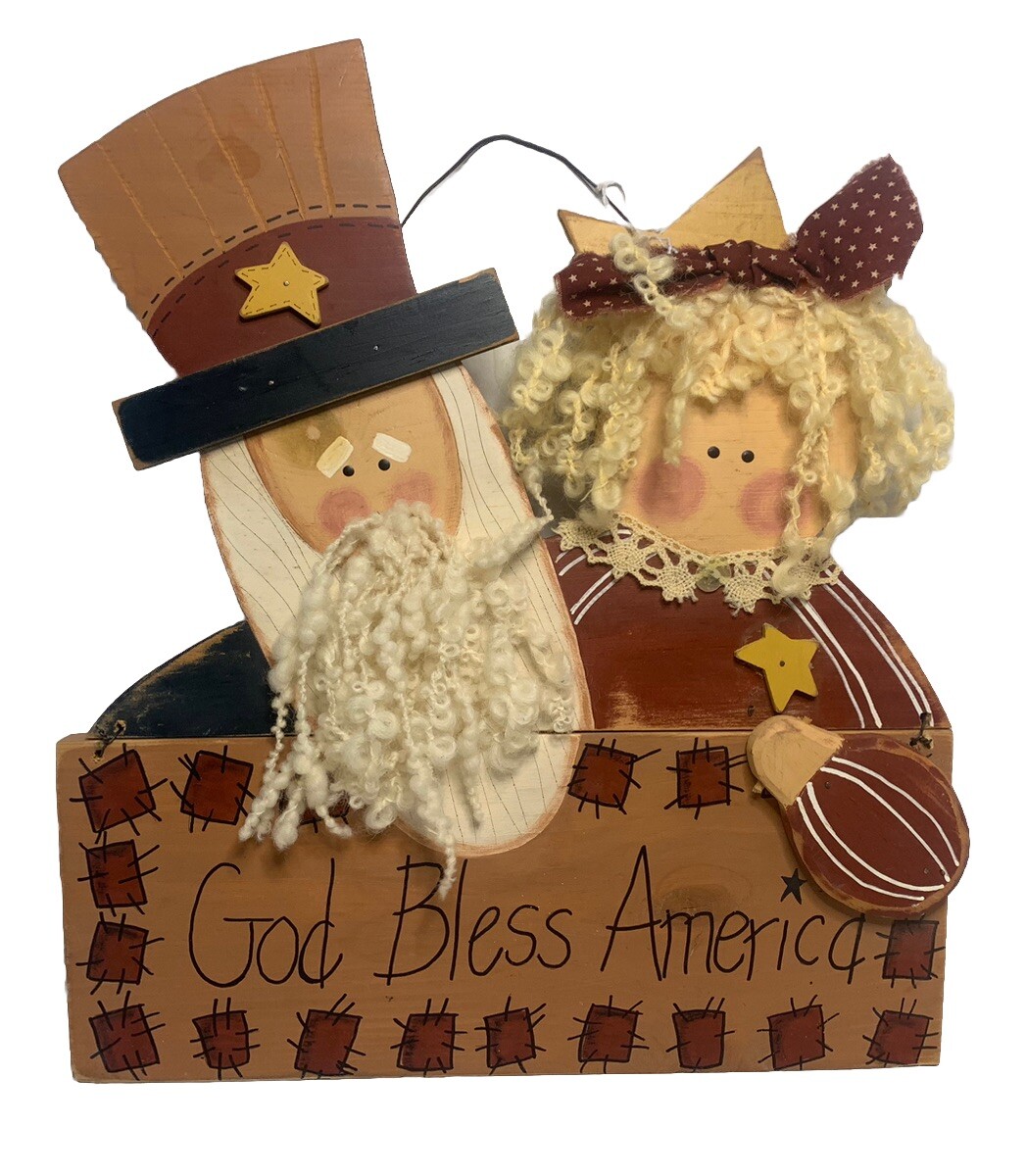 как выглядит Hand Painted Uncle Sam Wife Wooden Sign God Bless America Fourth Of July Decor фото
