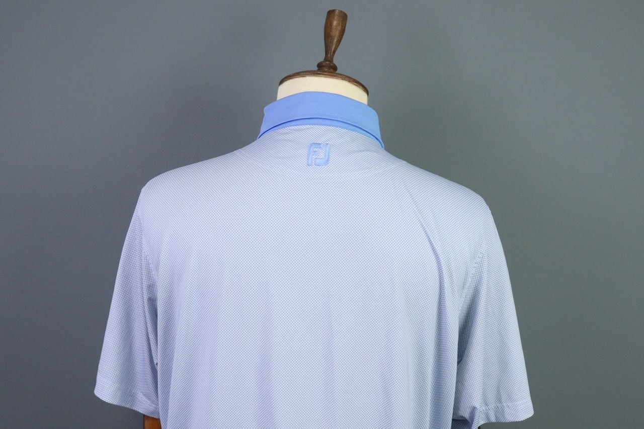 FJ FootJoy Blue Golf Check Sports Wear Short Sleeve Polo Shirt Size L