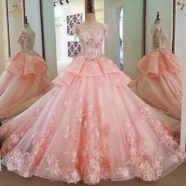 как выглядит Vintage Pink Wedding Dresses A Line Lace Appliques 3D Flowers Bridal Gowns фото