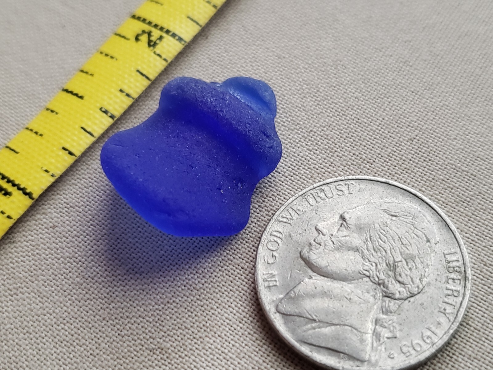 PURE BEACH SEA GLASS SURF TUMBLED COBALT BLUE OCEAN FROSTED NECK LIP MEDIUM E01